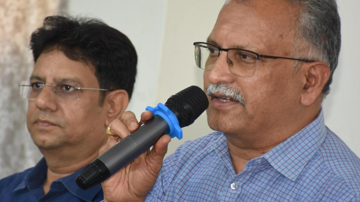 JSS College of Pharmacy principal T.M. Pramod Kumar addressing the press in Mysuru on Tuesday (April 21).