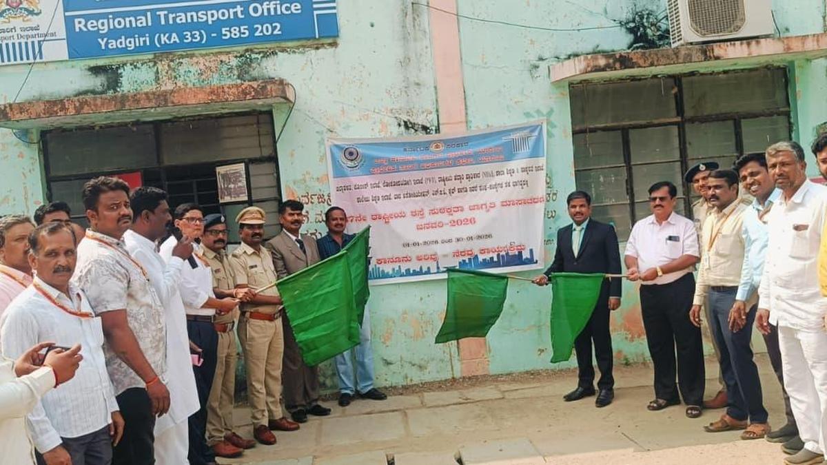 Judge Mariyappa flagging off a drive to create road safety awareness in Yadgir on Thursday. | Photo Credit: SPECIAL ARRANGEMENT Civil Judge and Member-Secretary of District Legal Services Authority Mariyappa has appealed to people to follow traffic rules while driving and save lives. He was addressing a gathering after inaugurating the 37th National Road Safety Awareness Drive conducted by the Regional Transport Department, District Legal Services Authority, district administration and the Home Department jointly in Yadgir on Thursday. Mr. Mariyappa said that a majority of road accidents are caused by rash and negligent driving. “Exceeding speed limits, using cell phones while driving and riding motorcycles without helmets cause accidents and put an end to valuable lives. Every rider should follow the safety guidelines and motor vehicle rules for his own safety and that of others. Violators of the law have to face legal consequences, including fines,” he said. He said that while around 12,000 people die in road accidents in the State every year, there are countless others who lose their limbs and various body parts. “Whenever you are on the road, you must remember that your dependents are waiting at home for your safe return,” he added. “The drive has been launched to create awareness on how and why to follow traffic rules. In many such incidents, minors are found riding vehicles. But it shouldn’t happen,” he said. Regional Transport Officer Milind Kumar said that the general public should join hands with the department to create awareness through similar drives to save valuable lives. District-level officers of various departments and others were present. Published – January 01, 2026 07:07 pm IST Share this: Click to share on WhatsApp (Opens in new window) WhatsApp Click to share on Facebook (Opens in new window) Facebook Click to share on Threads (Opens in new window) Threads Click to share on X (Opens in new window) X Click to share on Telegram (Opens in new window) Telegram Click to share on LinkedIn (Opens in new window) LinkedIn Click to share on Pinterest (Opens in new window) Pinterest Click to email a link to a friend (Opens in new window) Email More Click to print (Opens in new window) Print Click to share on Reddit (Opens in new window) Reddit Click to share on Tumblr (Opens in new window) Tumblr Click to share on Pocket (Opens in new window) Pocket Click to share on Mastodon (Opens in new window) Mastodon Click to share on Nextdoor (Opens in new window) Nextdoor Click to share on Bluesky (Opens in new window) Bluesky Like this:Like Loading... Post navigation Shivamogga district administration seeks people’s cooperation for joint survey PMJVK funds to Kerala stalled since 2022