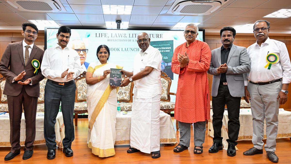 Madras High Court Judge Justice L. Victoria Gowri receiving the first copy of the book written by Madras High Court Judge Justice N. Anand Venkatesh from Tamil scholar Solomon Pappaiah in Madurai on Saturday. | Photo Credit: R. ASHOK “Judges are ordinary human beings who require a dedicated space to articulate their observations and experiences within society,” remarked Madras High Court Judge Justice N. Anand Venkatesh. Speaking at the launch of his book, ‘Life, Law and Literature – Reflections of a Judge,’ held on Saturday at the Kalaignar Centenary Library Hall, the Justice shared that the work was born out of a need to soothe his own internal restlessness. He emphasised that the collection was entirely detached from his judicial office’s authority or the privileges he holds. “With every essay I completed, I felt a weight lift from my soul, much like a bird shedding feathers as it soars through the sky,” he reflected. He highlighted the inseparable bond between the legal system and the community. He noted that society cannot operate in isolation from the law, nor can the law be effectively distanced from society. “When law, society, and literature converge, a profound understanding of all three emerges, ultimately enriching public life,” he observed. Urging readers to look beyond formal literary style, he noted, “Do not seek literary elegance here; seek the beating human heart within these pages.” Justice Venkatesh described the book as a product of personal alchemy, adding, “I cannot say if this book will transform society, but just as science shows that coal becomes a diamond through change, this book represents my own transformation.” Madras High Court Judge Justice L. Victoria Gowri expressed her delight that such a significant literary event was held in Madurai rather than a metropolitan hub like Chennai. Drawing a parallel to UNESCO’s recognition of Kozhikode, she remarked, “Madurai signifies Madhuram (sweetness). If any city in Tamil Nadu embodies literary excellence, it is Madurai, the historic cradle of Sangam Tamil.” She praised the 50-essay compilation for spanning law, psychology, spirituality, and music. Quoting the author’s view on solitude as a source of strength, she compared his perspective on life to music: “True music exists in the silence between the notes. Similarly, the Justice views his court and home as peaceful ashrams, proving that our lives are harmonized by the melodies surrounding us.” Former Chief Secretary V. Irai Anbu lauded the book’s breadth, noting it covers everything from science and spirituality to love and happiness. “Justice’s exploration of complex, uncharted themes serves as an invaluable lesson for legal professionals and students alike. The author’s insightful dive into the professional stress faced by doctors, judges, and those in uniform is very important,” he noted. Tamil scholar Solomon Pappaiah, Madurai Bench of Madras High Court Bar Association President Isaac Mohanlal, and State President of the Indian Association of Lawyers K. Samidurai, among others, delivered speech during the event. Published – February 07, 2026 08:37 pm IST Share this: Click to share on WhatsApp (Opens in new window) WhatsApp Click to share on Facebook (Opens in new window) Facebook Click to share on Threads (Opens in new window) Threads Click to share on X (Opens in new window) X Click to share on Telegram (Opens in new window) Telegram Click to share on LinkedIn (Opens in new window) LinkedIn Click to share on Pinterest (Opens in new window) Pinterest Click to email a link to a friend (Opens in new window) Email More Click to print (Opens in new window) Print Click to share on Reddit (Opens in new window) Reddit Click to share on Tumblr (Opens in new window) Tumblr Click to share on Pocket (Opens in new window) Pocket Click to share on Mastodon (Opens in new window) Mastodon Click to share on Nextdoor (Opens in new window) Nextdoor Click to share on Bluesky (Opens in new window) Bluesky Like this:Like Loading... Post navigation Global firms are now trusting India for their most advanced semiconductor work: Minister Ashwini Vaishnaw A memorable golden jubilee reunion