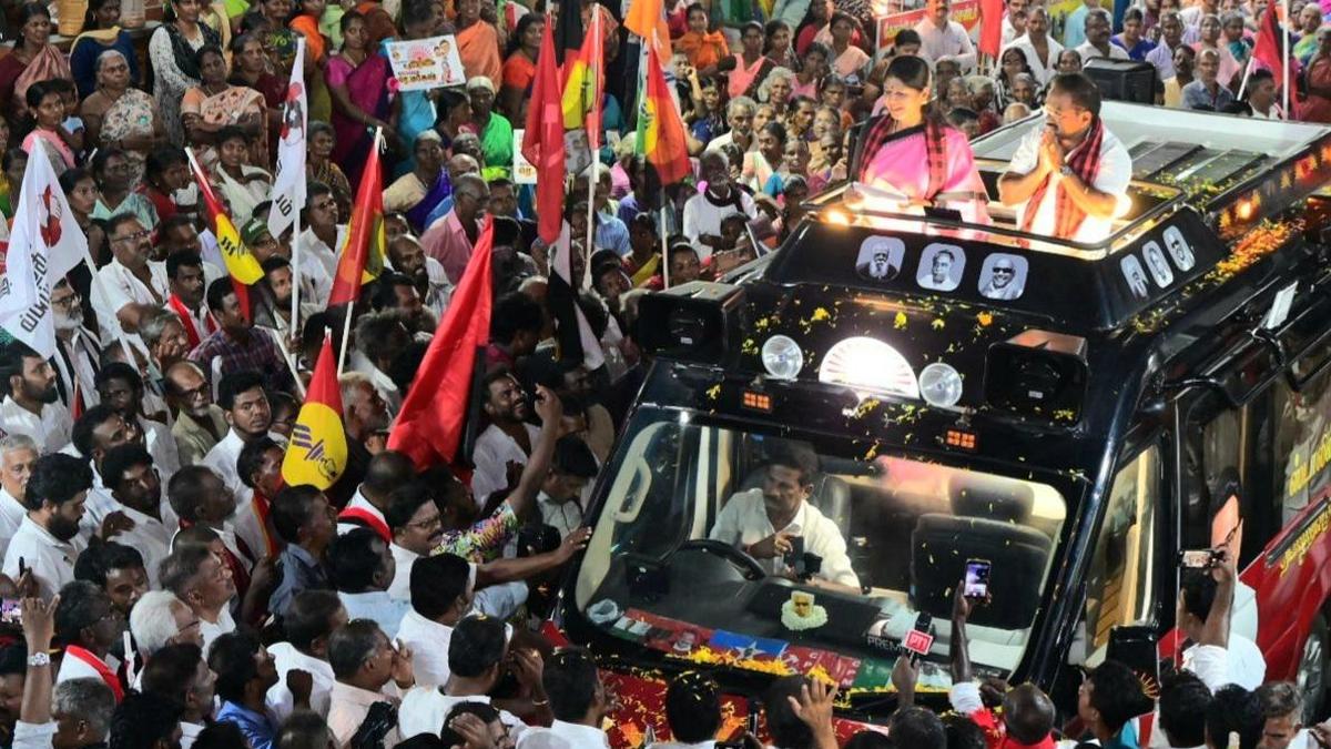 Thoothukudi MP Kanimozhi addressing an election rally in Kanniyakumari district on Monday. | Photo Credit: SPECIAL ARRANGEMENT Thoothukudi MP and DMK deputy general secretary Kaimozhi on Monday criticised the hypocrisy and double standards of BJP, stating that the party could not cannot insult Tamils elsewhere and seek their votes in Tamil Nadu. She asked how BJP leaders who had allegedly spoken disrespectfully about Tamils in different forums could now come to the State and ask for electoral support. Published – April 13, 2026 10:16 pm IST Share this: Click to share on WhatsApp (Opens in new window) WhatsApp Click to share on Facebook (Opens in new window) Facebook Click to share on Threads (Opens in new window) Threads Click to share on X (Opens in new window) X Click to share on Telegram (Opens in new window) Telegram Click to share on LinkedIn (Opens in new window) LinkedIn Click to share on Pinterest (Opens in new window) Pinterest Click to email a link to a friend (Opens in new window) Email More Click to print (Opens in new window) Print Click to share on Reddit (Opens in new window) Reddit Click to share on Tumblr (Opens in new window) Tumblr Click to share on Pocket (Opens in new window) Pocket Click to share on Mastodon (Opens in new window) Mastodon Click to share on Nextdoor (Opens in new window) Nextdoor Click to share on Bluesky (Opens in new window) Bluesky Like this:Like Loading... Post navigation Consultation on mental health and technology The final note: Asha Bhosle laid to rest