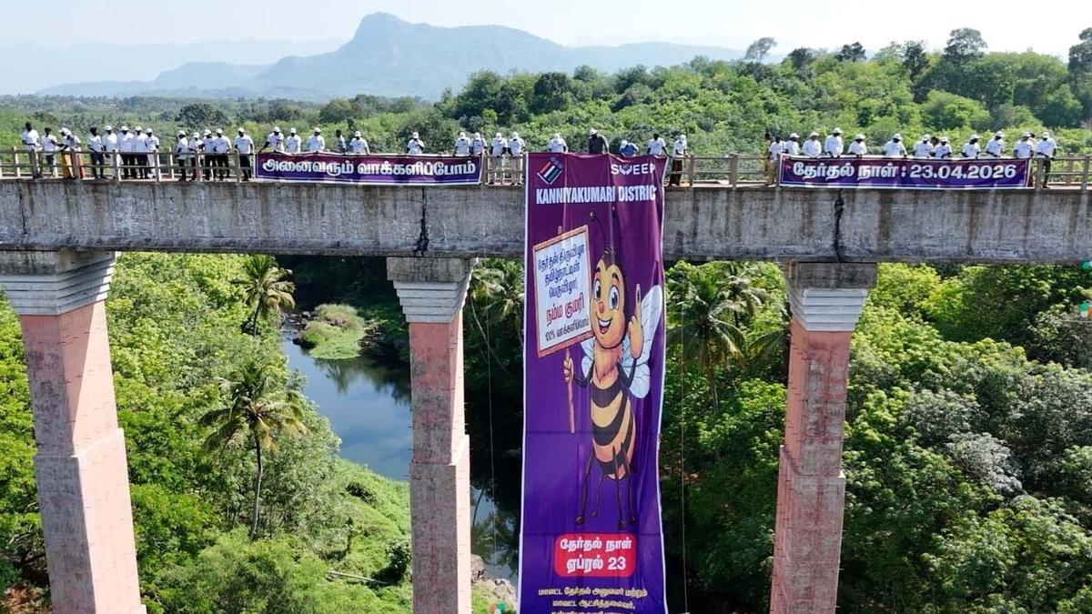 Voters’ awareness banner installed at Mathoor  bridge in Kanniyakumari district.