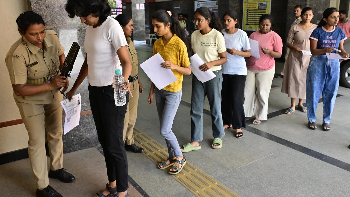 Students go thorough security measures including identity verification, frisking, and surveillance ahead of the 2025 Common Entrance Test (CET) at an exam centre in Bengaluru. File photo. | Photo Credit: MURALI KUMAR K The Common Entrance Test (CET) 2026 for admissions to professional courses such as engineering, agricultural sciences and veterinary sciences will be held on April 23 and 24, Karnataka Examinations Authority (KEA) said on Tuesday (April 21, 2026). Physics and Chemistry papers are scheduled for April 23, and Mathematics and Biology papers are scheduled for April 24, the examination authority said, adding that extensive surveillance and security measures are in place this year to prevent malpractice. Published – April 21, 2026 06:41 pm IST Share this: Click to share on WhatsApp (Opens in new window) WhatsApp Click to share on Facebook (Opens in new window) Facebook Click to share on Threads (Opens in new window) Threads Click to share on X (Opens in new window) X Click to share on Telegram (Opens in new window) Telegram Click to share on LinkedIn (Opens in new window) LinkedIn Click to share on Pinterest (Opens in new window) Pinterest Click to email a link to a friend (Opens in new window) Email More Click to print (Opens in new window) Print Click to share on Reddit (Opens in new window) Reddit Click to share on Tumblr (Opens in new window) Tumblr Click to share on Pocket (Opens in new window) Pocket Click to share on Mastodon (Opens in new window) Mastodon Click to share on Nextdoor (Opens in new window) Nextdoor Click to share on Bluesky (Opens in new window) Bluesky Like this:Like Loading... Post navigation JSS Medical College to host workshop on generic medicines, global challenges Task force to come up with an anthem for Western Ghats