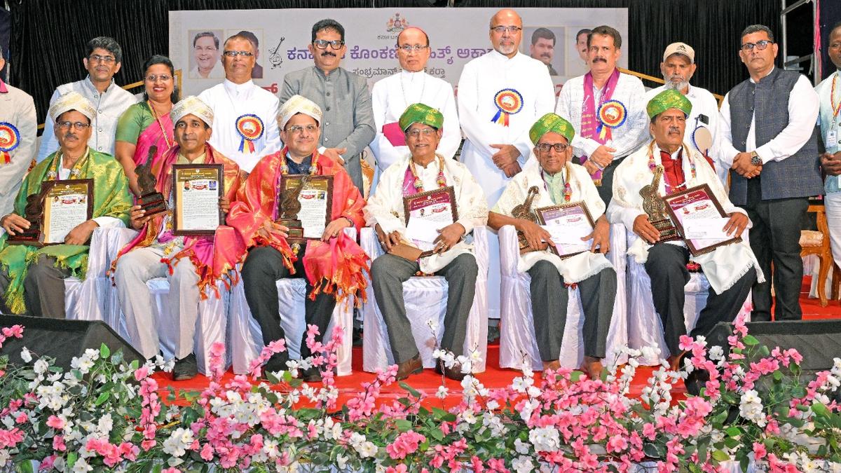Gerald Isaac Lobo, Bishop Emeritus of the Udupi Diocese, Karnataka Konkani Sahitya Academy chairman Joachim Stany Alvares, and other dignitaries presenting Karnataka Konkani Sahitya Academy’s Honourary and Book Awards 2025 to six personalities at St. Francis Xavier Church in Udupi on Monday (April 27). | Photo Credit: UMESH S. SHETTIGAR The Karnataka Konkani Sahitya Academy presented its honourary awards and book awards for the year 2025 at a programme organised at St. Francis Xavier Church in Udyavara, Udupi, on Monday (April 27). Inaugurating the programme, Gerald Isaac Lobo, Bishop Emeritus of the Udupi Diocese, said that though the influence of regional languages is declining in the midst of global and international languages, it is commendable that the Konkani Sahitya Academy is making every effort to preserve Konkani. Published – April 27, 2026 09:00 pm IST Share this: Click to share on WhatsApp (Opens in new window) WhatsApp Click to share on Facebook (Opens in new window) Facebook Click to share on Threads (Opens in new window) Threads Click to share on X (Opens in new window) X Click to share on Telegram (Opens in new window) Telegram Click to share on LinkedIn (Opens in new window) LinkedIn Click to share on Pinterest (Opens in new window) Pinterest Click to email a link to a friend (Opens in new window) Email More Click to print (Opens in new window) Print Click to share on Reddit (Opens in new window) Reddit Click to share on Tumblr (Opens in new window) Tumblr Click to share on Pocket (Opens in new window) Pocket Click to share on Mastodon (Opens in new window) Mastodon Click to share on Nextdoor (Opens in new window) Nextdoor Click to share on Bluesky (Opens in new window) Bluesky Like this:Like Loading... Post navigation DME panel to probe mental harassment charges against faculty members Rajnath Singh arrives in Bishkek for SCO Defence Ministers’ Meeting
