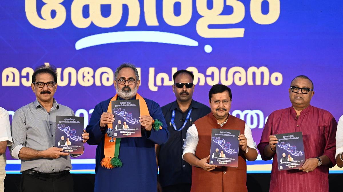 BJP president Nitin Nabin along with party’s Kerala chief Rajeev Chandrasekar and others releasing the party’s Assembly election manifesto in Thiruvananthapuram on Tuesday. | Photo Credit: NIRMAL HARINDRAN The BJP-led National Democratic Alliance (NDA) on Tuesday released its ‘Vikasita Keralam Vision’ manifesto which promises a radical job revolution and a “politics of performance” to transform the State’s economic and social landscape. The document pledges the establishment of the State’s first All India Institute of Medical Sciences (AIIMS), categorising the promise as a priority initiative to fulfil a long pending demand for advanced medical care . Yet another major promise is the development of a high-speed railway network connecting Thiruvananthapuram and Kannur. This ambitious project, designed with a maximum speed of 200 km/hr, aims to reduce the north-south travel time to just three hours and 15 minutes. The proposed project is touted to be India’s first ‘totally green railway project’ and will utilise elevated or tunnelled tracks for 90% of its length to minimise land acquisition. The manifesto, presented by BJP State president Rajeev Chandrasekhar, also proposes an AI-powered corruption-free, responsive governance model. This includes a ‘Keralam Administrative Modernisation Programme’, which seeks to resolve the backlog of over three lakh pending files in the Secretariat through digital integration and a blockchain-based land registry. The ‘Vikasita Keralam Vision’ also promises economic rejuvenation, with a goal to eliminate unemployment by creating nearly 10 lakh jobs. The coalition plans to achieve this through employment-linked grants of ₹1 lakh per job created, targeting high-growth sectors like manufacturing, tourism, agriculture, food processing and pharmaceuticals. The manifesto also outlines a strategy to transform Kerala into a ‘food surplus State’ by guaranteeing minimum support prices for all crops and establishing a State-wide cold storage network to support farmers. The NDA also pledges welfare schemes for lower-income households, including the introduction of ‘Bhakshya Arogya Suraksha cards’ for women in below poverty line (BPL) families that will provide a monthly recharge of ₹2,500 for groceries and medicines. Other welfare pledges include providing 20,000 litres of free water monthly to every household, two free LPG cylinders annually during Onam and Christmas, and increasing social security pensions to ₹3,000 per month for senior citizens over 70 and widows. Moreover, the manifesto delves into safety and environmental concerns through various proposals, including expanding all-women police stations to every taluk and increasing the proportion of women in the force to 30%. The NDA also pledges to resolve the long-standing Mullaperiyar dam issue by working with the Central government and Tamil Nadu to ensure ‘safety for Kerala’ while maintaining ‘water for Tamil Nadu.’ Published – March 31, 2026 07:56 pm IST Share this: Click to share on WhatsApp (Opens in new window) WhatsApp Click to share on Facebook (Opens in new window) Facebook Click to share on Threads (Opens in new window) Threads Click to share on X (Opens in new window) X Click to share on Telegram (Opens in new window) Telegram Click to share on LinkedIn (Opens in new window) LinkedIn Click to share on Pinterest (Opens in new window) Pinterest Click to email a link to a friend (Opens in new window) Email More Click to print (Opens in new window) Print Click to share on Reddit (Opens in new window) Reddit Click to share on Tumblr (Opens in new window) Tumblr Click to share on Pocket (Opens in new window) Pocket Click to share on Mastodon (Opens in new window) Mastodon Click to share on Nextdoor (Opens in new window) Nextdoor Click to share on Bluesky (Opens in new window) Bluesky Like this:Like Loading... Post navigation Marco Rubio: US attacked Iran because this was the final chance to wipe out Iran’s threat U. S. strikes Iranian nuclear site as Tehran hits oil tanker near Dubai