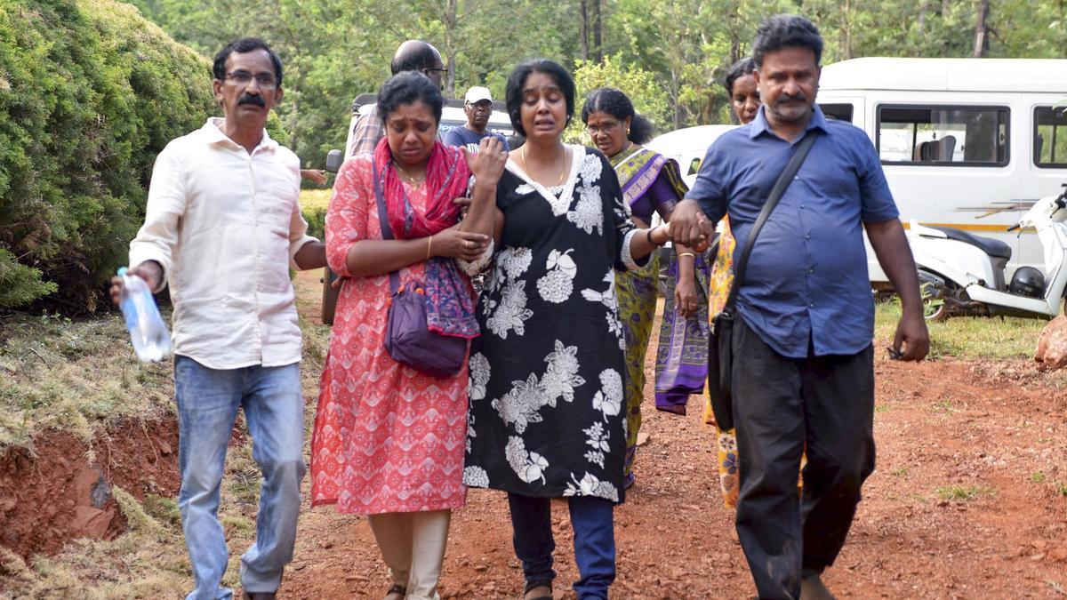 Grieving family members after the body of a 15-year-old girl from Kerala was recovered in Chikkamagaluru district.