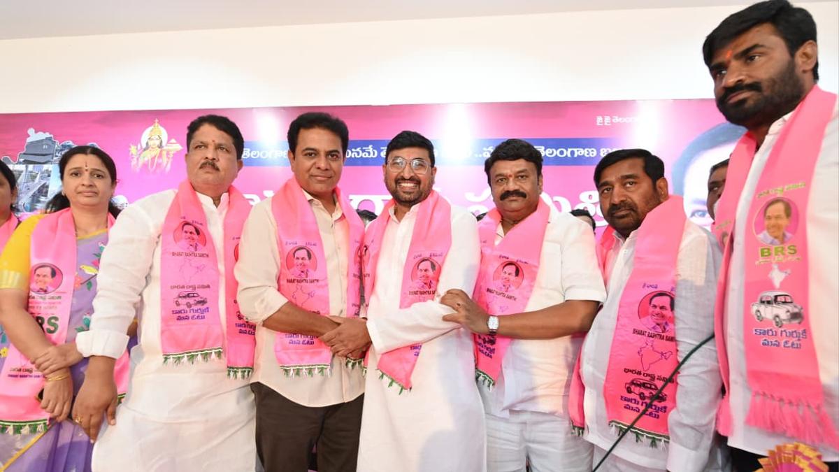 BRS working president K.T. Rama Rao along with party MLAs M. Krishna Rao, T. Srinivas Yadav, G. Jagadish Reddy and others at a programme in Hyderabad on Thursday. HYDERABAD Working president of the Bharat Rashtra Samithi (BRS) K.T. Rama Rao has exuded confidence that it is the pink flag (BRS) that would fly high in the upcoming municipal corporation elections in Hyderabad, irrespective of the number of civic bodies GHMC is split into since the party has a strong base despite some MLAs defecting to the ruling party. Speaking at a party meeting here on Thursday to welcome S. Vijay Kumar Reddy from Serilingampally constituency along with followers, Mr. Rao said BRS would win the municipal polls in Hyderabad whenever they were held. Though the Serilingampally MLA elected on BRS ticket defected to the Congress, the cadre was intact with BRS and the party would make a clean sweep of the 24 divisions in the Serilingampally constituency/zone. He accused the Congress of coming to power by making false promises to people and the Bharatiya Janata Party (BJP) had done no good to Telangana during the last 12 years for which it is in power at the Centre. He stated that law and order had deteriorated badly in Hyderabad after the Congress party assumed power. The BRS leader stated that the party would soon have division-wise meetings for the municipal corporation elections in the city. He assured the party cadre that the leadership would always be there for them at any hour of need. Published – February 12, 2026 07:36 pm IST Share this: Click to share on WhatsApp (Opens in new window) WhatsApp Click to share on Facebook (Opens in new window) Facebook Click to share on Threads (Opens in new window) Threads Click to share on X (Opens in new window) X Click to share on Telegram (Opens in new window) Telegram Click to share on LinkedIn (Opens in new window) LinkedIn Click to share on Pinterest (Opens in new window) Pinterest Click to email a link to a friend (Opens in new window) Email More Click to print (Opens in new window) Print Click to share on Reddit (Opens in new window) Reddit Click to share on Tumblr (Opens in new window) Tumblr Click to share on Pocket (Opens in new window) Pocket Click to share on Mastodon (Opens in new window) Mastodon Click to share on Nextdoor (Opens in new window) Nextdoor Click to share on Bluesky (Opens in new window) Bluesky Like this:Like Loading... Post navigation Namibia opt to bowl against India in T20 World Cup Fired from BJP social media team, Assam man hails Right Wing support