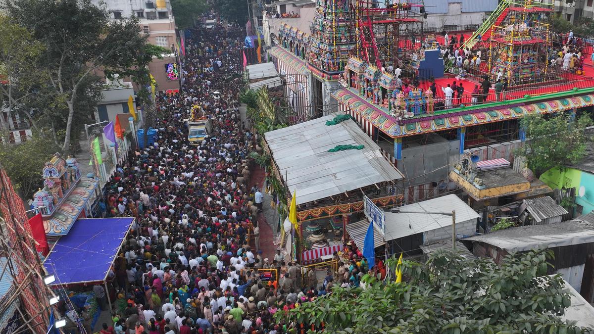 Devotees attending the kumbabhishekam at the Sri Raveeswarar Temple at Vyasarpadi in Chennai on Sunday. | Photo Credit: B. JOTHI RAMALINGAM The kumbabhishekam of the famous Sri Raveeswarar Temple in Vyasarpadi was held on Sunday morning with thousands of devotees witnessing the event. The temple, which got flooded every monsoon, was lifted from the ground level and now stands at 7.2 ft above the road. It used to be 4 ft. below the road level. The shrines of Sri Raveeswarar and Sri Maragathambal were lifted up, along with the Maha Mandapam and Ardha Mandapam, as one structure with an area of 2,150 sq. ft. The majestic gopuram was also raised by 6.3 ft using jacks. The previous kumbabhishekam was held on February 22, 2013. The balalayam for the consecration was done on October 7, 2024. The sthala vriksham, a vanni tree has been safely placed inside a wooden covering. The temple also has a younger vanni tree. The temple, where legend has it that Lord Surya is believed to have worshipped Lord Shiva in the form of a Lingam made of vanni wood and bathed in the temple tank, was renovated during the later Chola period. The temple tank, the Surya Theertham, was renovated last year. The temple also has shrines for Sundara Vinayakar, Saint Vallalar, Saint Vyasar, Munai Kaatha Perumal, Subramanya along with Valli and Devayanai, Iyyappan, Kaala Bhairavar, Navagraham, Anjaneyar, and 65 Nayanamars. Published – February 23, 2026 04:47 am IST Share this: Click to share on WhatsApp (Opens in new window) WhatsApp Click to share on Facebook (Opens in new window) Facebook Click to share on Threads (Opens in new window) Threads Click to share on X (Opens in new window) X Click to share on Telegram (Opens in new window) Telegram Click to share on LinkedIn (Opens in new window) LinkedIn Click to share on Pinterest (Opens in new window) Pinterest Click to email a link to a friend (Opens in new window) Email More Click to print (Opens in new window) Print Click to share on Reddit (Opens in new window) Reddit Click to share on Tumblr (Opens in new window) Tumblr Click to share on Pocket (Opens in new window) Pocket Click to share on Mastodon (Opens in new window) Mastodon Click to share on Nextdoor (Opens in new window) Nextdoor Click to share on Bluesky (Opens in new window) Bluesky Like this:Like Loading... Post navigation Sanctuary with lifelong refuge for rescued animals launched in Chennai Former MP calls for sustainable remedy to recurring fishermen arrests by Sri Lankan Navy