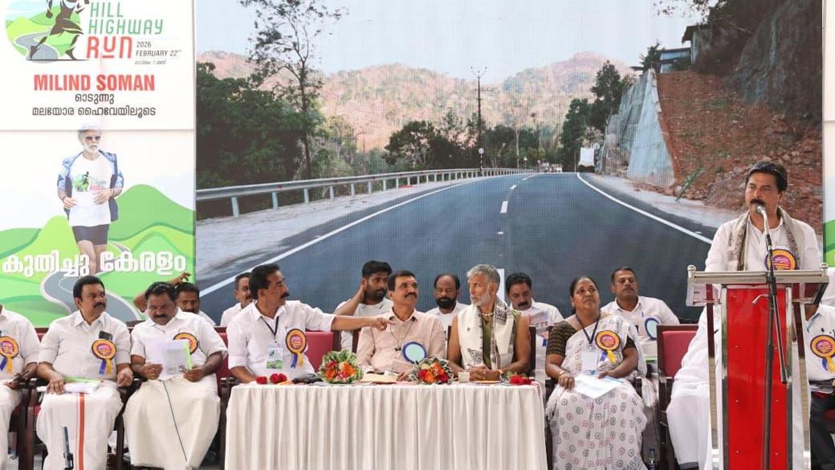 The Kuttikkanam-Kattappana stretch of the State Highway being inaugurated on Sunday. | Photo Credit: SPECIAL ARRANGEMENT The State has made significant strides in infrastructure development, Public Works Department Minister P.A. Muhammed Riyas has said. Virtually inaugurating the Kuttikkanam-Kattappana stretch of the State highway on Sunday, Mr. Riyas noted that 60% of the State’s roads have been upgraded to Bituminous Macadam and Bituminous Concrete (BMBC) standards within the last five years. The State has spent over ₹35,000 crore on road development over the past five years. “Through KIIFB, ₹46,145 crore has been allotted for 528 projects under the PWD’s infrastructure development initiative,” Mr. Riyas said. Water Resources Minister Roshy Augustine, who presided over the function at the Kattappana Mini Stadium, stated that the completion of the hill highway would totally transform the face of Kattappana and the High Range district. “An administrative sanction of ₹36 crore has already been received for the completion of the Kattappana-Puliyanmala stretch of the highway,” Mr. Augustine added. Fitness icon and Bollywood actor Milind Soman attended as chief guest. He noted that the Kuttikkanam-Kattappana hill highway is one of the best roads in the world and expressed his gratitude to the government for inviting him to participate in the inaugural function. District Collector Dineshan Cheruvatt and former Peerumade MLA, E.S. Bijimol were among those who attended the function. The 40.05-km Idukki hill highway project was funded via KIIFB. Completed in phases, the stretch from Kuttikkanam to Kattappana is now fully operational. The upgrade of this highway has been a long-standing demand of the local population, including settler farmers. Passing through tea plantations and farmlands, the route offers scenic views to travellers. According to tourism stakeholders, the new highway will attract more visitors to destinations such as Vagamon and the British-built CSI Church in Pallikkunnu. Published – February 22, 2026 07:21 pm IST Share this: Click to share on WhatsApp (Opens in new window) WhatsApp Click to share on Facebook (Opens in new window) Facebook Click to share on Threads (Opens in new window) Threads Click to share on X (Opens in new window) X Click to share on Telegram (Opens in new window) Telegram Click to share on LinkedIn (Opens in new window) LinkedIn Click to share on Pinterest (Opens in new window) Pinterest Click to email a link to a friend (Opens in new window) Email More Click to print (Opens in new window) Print Click to share on Reddit (Opens in new window) Reddit Click to share on Tumblr (Opens in new window) Tumblr Click to share on Pocket (Opens in new window) Pocket Click to share on Mastodon (Opens in new window) Mastodon Click to share on Nextdoor (Opens in new window) Nextdoor Click to share on Bluesky (Opens in new window) Bluesky Like this:Like Loading... Post navigation Madurai reader’s mail – The Hindu Police seize 10 two-wheelers, 10 of litres illicit arrack in Chittoor district