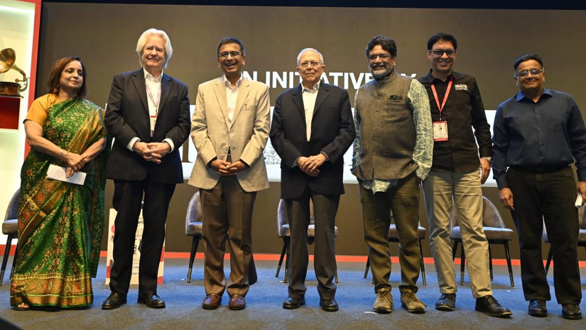 A.C. Grayling, Eminent Philosopher and Author, D.Y. Chandrachud, Former Chief Justice of India, Nirmala Lakshman, Chairperson of The Hindu Group Publishing Pvt Ltd, N. Ram, Director The Hindu Group, N. Ravi, Director, Kasturi & Sons, N. Murali, Director The Hindu Group Suresh Nambath, Editor, The Hindu, L. Navneerh, CEO, The Hindu Group and Suresh Balajrishna, CRO, The Hindu Group at the inauguration of the The Hindu Lit for Life 2026.