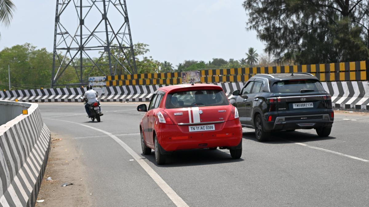 Absence of median and signboards at the overbridge at Mudakusalai in Madurai poses risk to road users.