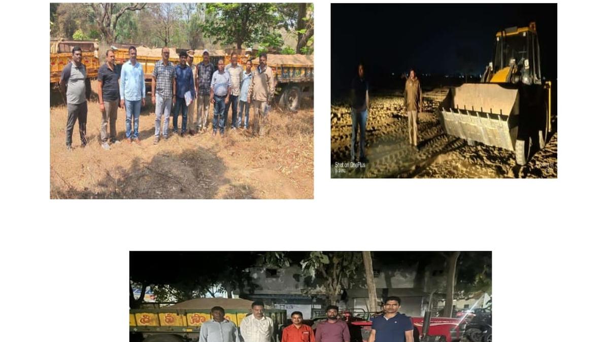 Vigilance & Enforcement officials during the surprise raids. In a multi-district crackdown, the Vigilance & Enforcement (V&E) Department arrested 19 persons, apart from identifying about 30 accused including organisers, and recovered approximately 245 metric tonnes of illegally mined sand during surprise raids conducted on February 19 and 20, 2026. Following tip-offs, V&E units from Karimnagar, Warangal and RC Puram carried out coordinated raids across five mandals in Jagtial, Hanamkonda and Nizamabad districts. The operations targeted illegal sand excavation and transportation networks operating in Bommena village in Jagtial, Kakkiralapally X Road and Akeru Vagu in Hanamkonda and Sirikonda in Nizamabad district. Officials seized a total of 24 vehicles and machinery units, including six excavators, two lorries, one tipper and 15 tractors that were being used for illegal excavation and transportation of sand. Investigations revealed that the syndicates adopted a two-phase strategy to evade detection. During daytime, tractors were used to discreetly excavate sand from riverbeds such as Akeru Vagu and Dondla Vagu and transport it to nearby private agricultural lands for temporary stockpiling. At night, the operation intensified with deployment of heavy machinery to load the stockpiled sand into lorries and tippers for rapid transportation, aiming to avoid enforcement checks. Multiple criminal cases have been registered under provisions of the Bharatiya Nyaya Sanhita (BNS), the Mines and Minerals (Development and Regulation) Act, the Prevention of Damage to Public Property (PDPP) Act and the Motor Vehicles Act. The Director General of the Vigilance & Enforcement Department said the raids were part of a broader effort to curb the theft of State resources and prevent leakage of public revenue. The department urged citizens to report instances of illegal sand mining or misuse of government resources by calling the toll-free number 14432. Published – February 20, 2026 07:53 pm IST Share this: Click to share on WhatsApp (Opens in new window) WhatsApp Click to share on Facebook (Opens in new window) Facebook Click to share on Threads (Opens in new window) Threads Click to share on X (Opens in new window) X Click to share on Telegram (Opens in new window) Telegram Click to share on LinkedIn (Opens in new window) LinkedIn Click to share on Pinterest (Opens in new window) Pinterest Click to email a link to a friend (Opens in new window) Email More Click to print (Opens in new window) Print Click to share on Reddit (Opens in new window) Reddit Click to share on Tumblr (Opens in new window) Tumblr Click to share on Pocket (Opens in new window) Pocket Click to share on Mastodon (Opens in new window) Mastodon Click to share on Nextdoor (Opens in new window) Nextdoor Click to share on Bluesky (Opens in new window) Bluesky Like this:Like Loading... Post navigation Coimbatore Corporation upgrades Telungupalayam school with new ₹1.15 crore building PM likely to visit Kerala in March first week