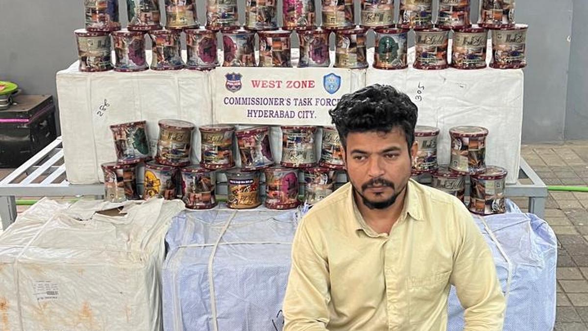 Mohd Shazaib arrested with 345 bobbins valued at ₹6.9 lakh in Hyderabad.