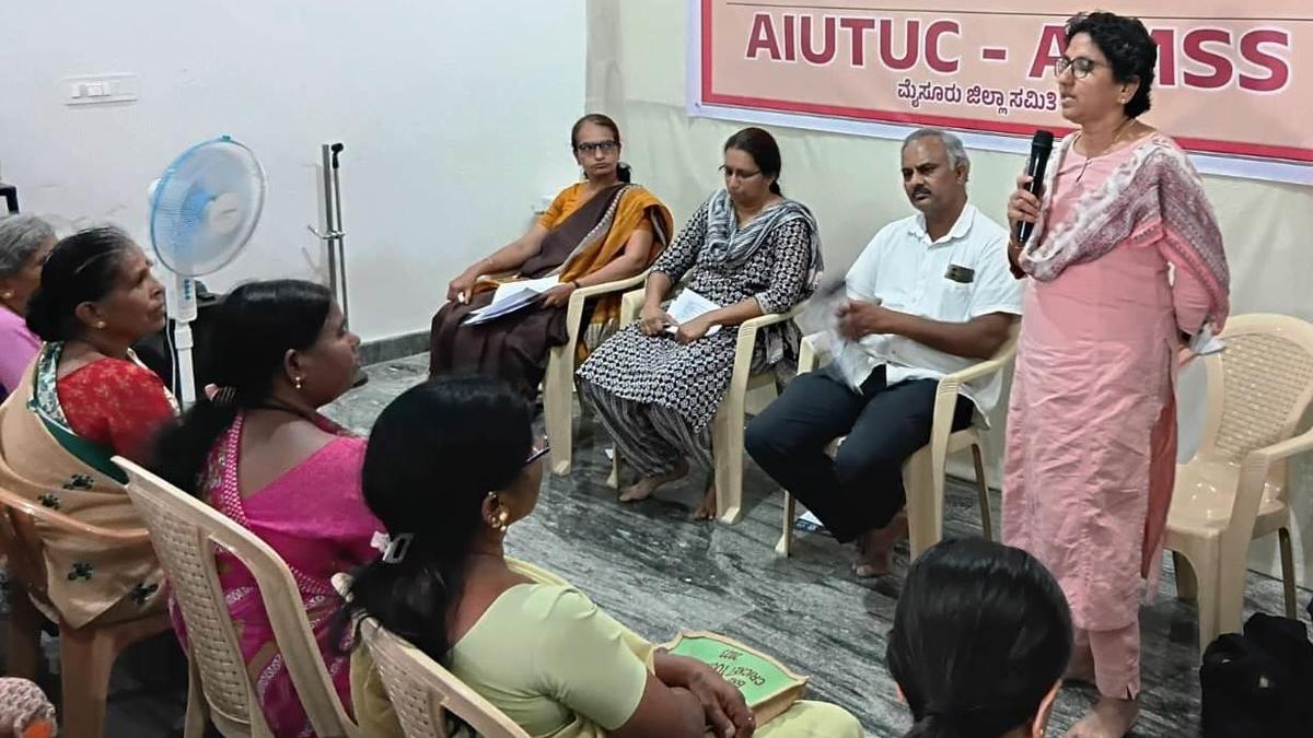 A meeting of domestic workers was held in Mysuru on Monday. | Photo Credit: M.A. Sriram A meeting of domestic workers held in Mysuru on Monday highlighted their problems and urged the authorities to ensure social and economic security for them. The Karnataka State United Domestic Workers’ Union, represented by Mysuru District Committees of All India United Trade Union Centre (AIUTUC) and All India Mahila Sanskritik Sangathan (AIMSS), who convened the meeting, have submitted a petition to the Labour Inspector, Mysuru, seeking fulfillment of their demands including the immediate setting up of a Welfare Board for Domestic Workers. Published – April 27, 2026 07:23 pm IST Share this: Click to share on WhatsApp (Opens in new window) WhatsApp Click to share on Facebook (Opens in new window) Facebook Click to share on Threads (Opens in new window) Threads Click to share on X (Opens in new window) X Click to share on Telegram (Opens in new window) Telegram Click to share on LinkedIn (Opens in new window) LinkedIn Click to share on Pinterest (Opens in new window) Pinterest Click to email a link to a friend (Opens in new window) Email More Click to print (Opens in new window) Print Click to share on Reddit (Opens in new window) Reddit Click to share on Tumblr (Opens in new window) Tumblr Click to share on Pocket (Opens in new window) Pocket Click to share on Mastodon (Opens in new window) Mastodon Click to share on Nextdoor (Opens in new window) Nextdoor Click to share on Bluesky (Opens in new window) Bluesky Like this:Like Loading... Post navigation Tambaram City Police Commissioner inspects security arrangements in counting centre Where is question of offence when there is consensual relationship? Supreme Court asks