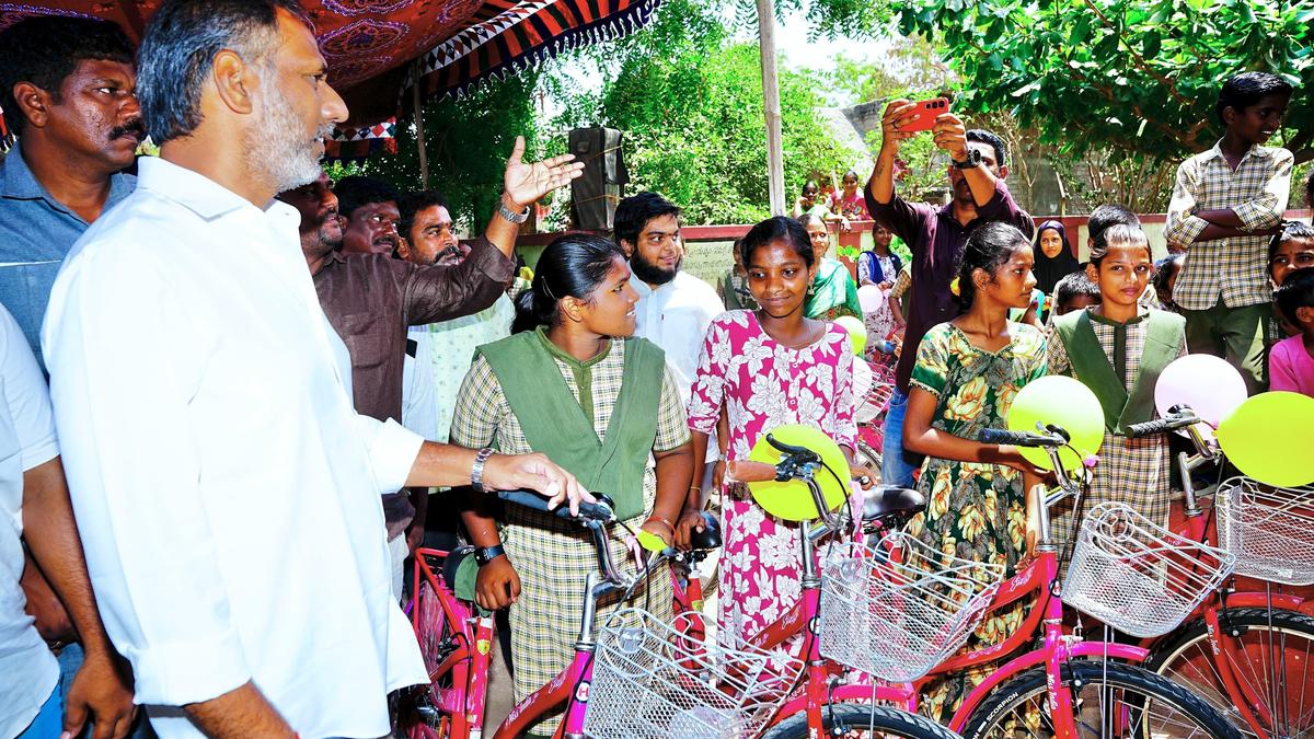 Energy Minister Gottipati Ravi Kumar distributing bicycles to the students of Zilla Parishad High School in Kopparam village of Santhamaguluru mandal in Prakasam district on Tuesday. | Photo Credit: HANDOUT Energy Minister Gottipati Ravi Kumar directed the officials to regularly inspect the quality of food being served to the students under the ‘Dokka Seethamma Mid-day Meal’ scheme in government schools during his visit to Addanki constituency on Tuesday. He also instructed the officials to partake in the mid-day meals at schools on a rotational basis and question any lapses in the implementation of the scheme. During his visit to the constituency, the Minister distributed bicycles to 72 students of Zilla Parishad High School (ZPHS) in Kopparam village of Santhamaguluru mandal in Prakasam district with the support of Action for Social Service in Social Transformation (ASSIST), a voluntary organisation. Published – April 21, 2026 06:51 pm IST Share this: Click to share on WhatsApp (Opens in new window) WhatsApp Click to share on Facebook (Opens in new window) Facebook Click to share on Threads (Opens in new window) Threads Click to share on X (Opens in new window) X Click to share on Telegram (Opens in new window) Telegram Click to share on LinkedIn (Opens in new window) LinkedIn Click to share on Pinterest (Opens in new window) Pinterest Click to email a link to a friend (Opens in new window) Email More Click to print (Opens in new window) Print Click to share on Reddit (Opens in new window) Reddit Click to share on Tumblr (Opens in new window) Tumblr Click to share on Pocket (Opens in new window) Pocket Click to share on Mastodon (Opens in new window) Mastodon Click to share on Nextdoor (Opens in new window) Nextdoor Click to share on Bluesky (Opens in new window) Bluesky Like this:Like Loading... Post navigation Over 11,400 personnel to be deployed at 2,379 booths in Erode district on April 23 Basavanna belongs to the entire human race, says Minister