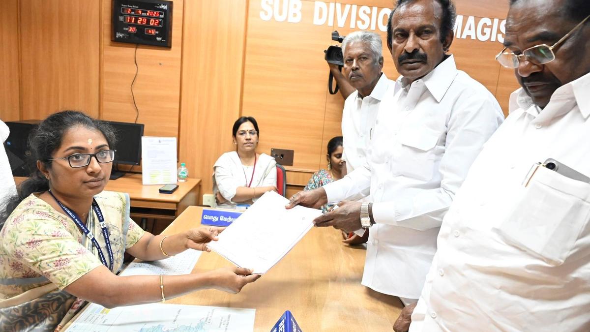 Minister for Housing, Prohibition and Excise S. Muthusamy, who is also the party’s south district secretary, on Thursday filed his nomination papers to contest from the Erode (West) Assembly constituency. He submitted his papers to Erode Revenue Divisional Officer N. Sindhuja, the Returning Officer for the constituency.