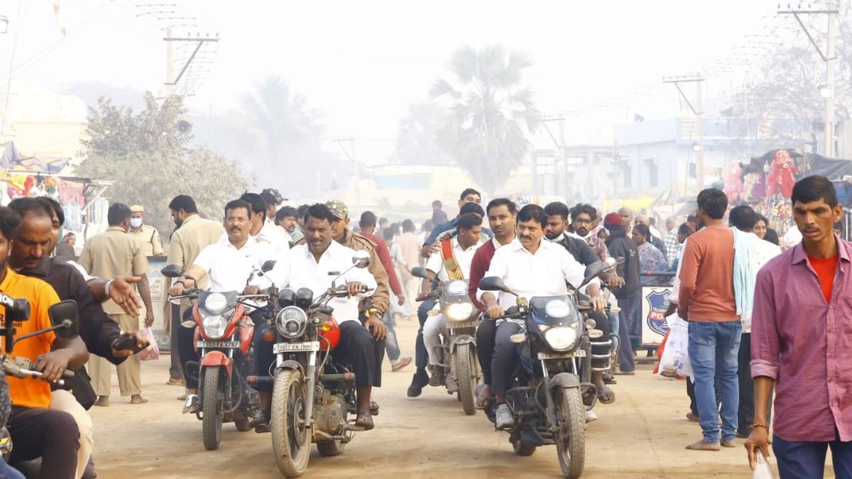 Ministers Ponguleti Srinivas Reddy and Adluri Laxman Kumar ride bikes during inspection of facilities provided for devotees visiting Sammakka–Saralamma Maha Jatara at Medaram on Thursday morning. Ministers Ponguleti Srinivas Reddy and Adluri Laxman Kumar inspected the arrangements for the ongoing Sammakka–Saralamma Maha Jatara on Thursday morning, touring the fair area, including the Jampannavagu, on motorbikes. District Collector T.S. Divakar and senior officials accompanied them during the inspection. During their visit to Jamppannavagu, the ministers reviewed facilities for devotees taking holy bath in the rivulet and inspected sanitation and cleanliness across the surrounding areas at the ground-level. Officials were instructed to ensure zero inconvenience to pilgrims during the peak days of the biennial fair. With the arrival of Saralamma, Medaram witnessed a surge in footfall, with lakhs of devotees thronging the shrine. The Jampannavagu was flowing lively as pilgrims took ritual dips, while long queues formed for darshan of the deities. The district administration said all arrangements had been made to ensure smooth darshan without discomfort to devotees. Crowds are expected to swell further with the arrival of Sammakka later in the day from Chilkalagutta. Anticipating the heavy rush, the administration has taken advance measures to manage crowd movement and safety. Everything has been put in place for the arrival of the Goddess Mothers. Chief Priest Kokkera Krishnaiah, along with Mallyala Satyam, Siddaboina Muninder, Siddaboina Bakkanna, Kommu Swami and Kommu Janardhan, will bring Sammakka to the temple. Officials said the police rope-party trial run from Chilkalagutta to the temple premises has already been completed. Published – January 29, 2026 06:38 pm IST Share this: Click to share on WhatsApp (Opens in new window) WhatsApp Click to share on Facebook (Opens in new window) Facebook Click to share on Threads (Opens in new window) Threads Click to share on X (Opens in new window) X Click to share on Telegram (Opens in new window) Telegram Click to share on LinkedIn (Opens in new window) LinkedIn Click to share on Pinterest (Opens in new window) Pinterest Click to email a link to a friend (Opens in new window) Email More Click to print (Opens in new window) Print Click to share on Reddit (Opens in new window) Reddit Click to share on Tumblr (Opens in new window) Tumblr Click to share on Pocket (Opens in new window) Pocket Click to share on Mastodon (Opens in new window) Mastodon Click to share on Nextdoor (Opens in new window) Nextdoor Click to share on Bluesky (Opens in new window) Bluesky Like this:Like Loading... Post navigation English play ‘Two Fathers’ at IIET Yettinahole project: CAG flags irregularities in tendering, financial management