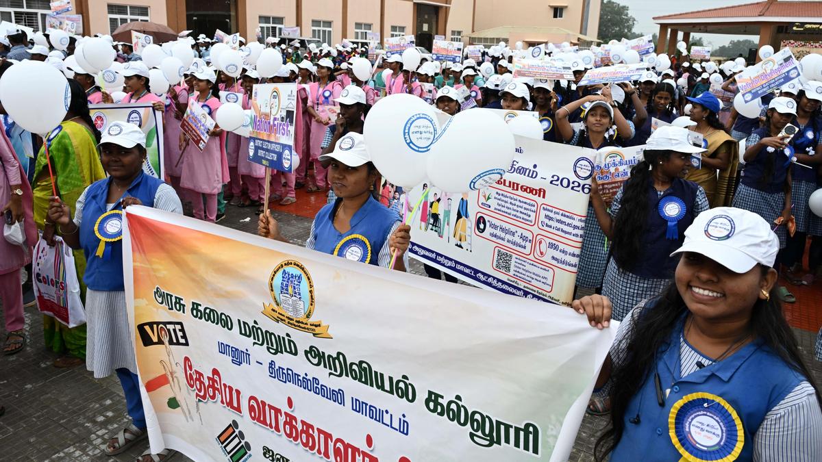 Students taking out a voter awareness rally in Tirunelveli on Sunday. | Photo Credit: A. SHAIKMOHIDEEN Awareness rallies and mobile electronic voting machine (EVM) demonstration vehicles were flagged off by Collectors of Tirunelveli, Kanniyakumari, Thoothukudi and Tenkasi districts to mark National Voters’ Day on Sunday. Tirunelveli Collector R. Sukumar flagged off the rally from the Corporation’s trade centre. The rally, along with the mobile EVM demonstration vehicle, went through the four car streets of Nellaiappar temple and returned to the trade centre through town arch. The procession included artistic performances such as karakattam and silambattam and more than 1,000 school and college students carried awareness placards. Speaking at the event Mr. Sukumar said that as per the orders of the Election Commission, National Voters’ Day awareness programme was conducted with great enthusiasm in Tirunelveli. Similar programmes were being conducted across all the constituencies of the district. Not a single eligible voter should be left out in the voters list and their names must be registered. Kanniyakumari Collector R. Alagumeena flagged off the vehicles for the six Assembly constituencies of the district. Addressing the media, she said awareness programmes on EVM machines had been launched in order to create awareness among the public of the process of voting in EVMs, checking the acknowledgement slip to see whom they had voted for and to make people to aware of the basic features of EVMs and Voter Verifiable Paper Audit Trail (VVPAT). In Thoothukudi, Collector K. Elambahavath flagged off the vehicles demonstrating the EVM process. At the event, he said the vehicles would travel across the district until the dates of the Assembly election was announced. Similarly, Tenkasi Collector A.K. Kamal Kishore flagged off five mobile vehicles from the Collectorate for each constituency in the district. Published – January 25, 2026 08:39 pm IST Share this: Click to share on WhatsApp (Opens in new window) WhatsApp Click to share on Facebook (Opens in new window) Facebook Click to share on Threads (Opens in new window) Threads Click to share on X (Opens in new window) X Click to share on Telegram (Opens in new window) Telegram Click to share on LinkedIn (Opens in new window) LinkedIn Click to share on Pinterest (Opens in new window) Pinterest Click to email a link to a friend (Opens in new window) Email More Click to print (Opens in new window) Print Click to share on Reddit (Opens in new window) Reddit Click to share on Tumblr (Opens in new window) Tumblr Click to share on Pocket (Opens in new window) Pocket Click to share on Mastodon (Opens in new window) Mastodon Click to share on Nextdoor (Opens in new window) Nextdoor Click to share on Bluesky (Opens in new window) Bluesky Like this:Like Loading... Post navigation TDP strengthens base in Rayalaseem with new district committees in Nandyal and Anantapur Transgender sets herself on fire outside police station in Srivilliputtur