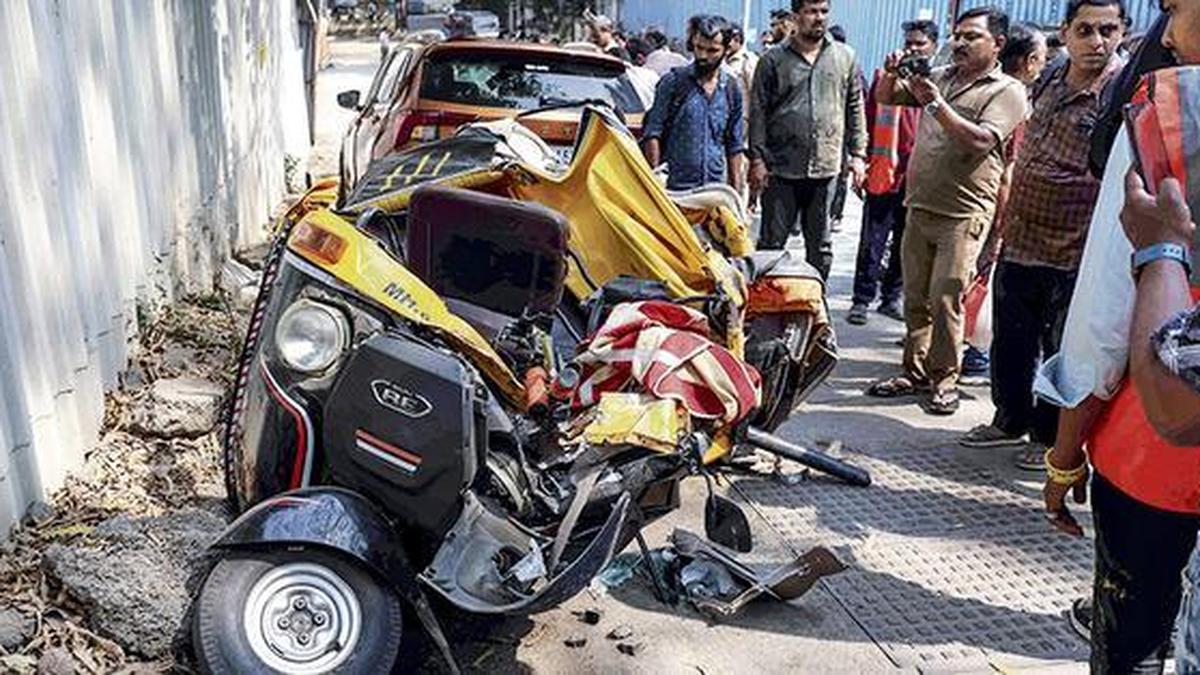 view of a damaged rickshaw after a portion of a cement metro pillar collapsed during the construction work and fell onto it, at LBS Road, Mulund, in Mumbai on February 14, 2026 | Photo Credit: ANI Metro 4 Executive Engineer Satyajit Salve has been suspended in connection with the accident that occurred on Saturday (February 14, 2026) in Mumbai’s Mulund area on Metro Line 4 (Wadala-Kasarwadavali) route. Deputy Chief Minister Eknath Shinde directed the suspension, saying that the MMRDA will bear the expenses of the treatment of the injured. “The officials who compromise public safety will not be spared,” he said. On Saturday (February 14, 2026), a part of the ‘parapet segment’ of the under-construction Metro Line 4 collapsed killing one person and injuring three others. The under-construction Metro Line-4 viaduct collapsed onto an autorickshaw and a car at around 12.20 pm. The injured have been identified as Rajkumar Indrajeet Yadav (45), who is in critical condition in the ICU, Mahendra Pratap Yadav (52) and Deepa Ruhiya (40), both are stable, while Ramdhan Yadav was declared brought dead at the hospital. An FIR has also been registered in the case under sections 105, 110, 324(5), 3(5) BNS against managers, engineers, supervisor and worker of company that is Milan Road Buildtech, subcontractor of Reliance Astaldi JV, and DB Hill LBG Supervisory company. Maharashtra Chief Minister Devendra Fadnavis has ordered probe into the incident and also declared ₹5 lakh ex gratia to the family of the deceased. Published – February 15, 2026 11:01 am IST Share this: Click to share on WhatsApp (Opens in new window) WhatsApp Click to share on Facebook (Opens in new window) Facebook Click to share on Threads (Opens in new window) Threads Click to share on X (Opens in new window) X Click to share on Telegram (Opens in new window) Telegram Click to share on LinkedIn (Opens in new window) LinkedIn Click to share on Pinterest (Opens in new window) Pinterest Click to email a link to a friend (Opens in new window) Email More Click to print (Opens in new window) Print Click to share on Reddit (Opens in new window) Reddit Click to share on Tumblr (Opens in new window) Tumblr Click to share on Pocket (Opens in new window) Pocket Click to share on Mastodon (Opens in new window) Mastodon Click to share on Nextdoor (Opens in new window) Nextdoor Click to share on Bluesky (Opens in new window) Bluesky Like this:Like Loading... Post navigation Paw patrol: Larry the cat marks 15 years at 10 Downing Street T20 World Cup 2026 | West Indies win toss, opt to bowl against Nepal