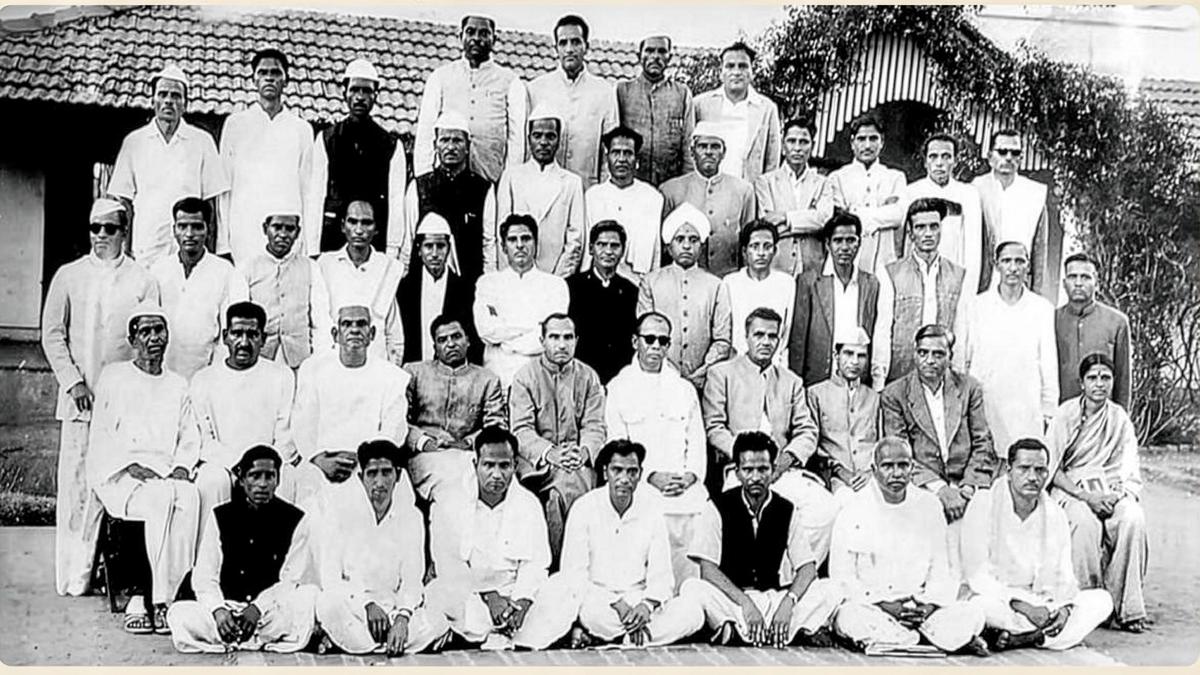 H.D. Deve Gowda (third from the left among those sitting on the ground) participating at a training of taluk board members in 1961.