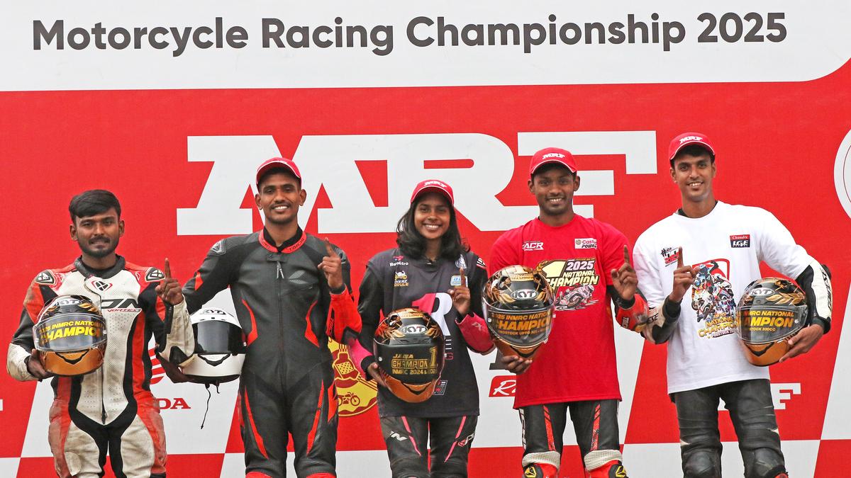 Nation’s best! It was a glorious finale for Raj Kumar, Beedani, Jagathishree, Rahil and Soorya. | Photo Credit: Special Arrangement CHENNAI: Chennai’s P.M. Soorya (Chandra LGE Racing) ended a nine-year wait for a National title as he delivered a stunning win in the morning to pocket the championship in the Pro-Stock 200cc Open category, and then cruised to third place in the next outing later in the day, on the concluding day of the MRF MMSC FMSCI Indian National Motorcycle Racing Championship at the Madras International Circuit on Sunday. Hyderabad’s Rahil Pillarisetty (RACR Castrol Power1) finished the season with a superb double, emerging champion in the premier Pro-Stock 301-400cc Open category. The others who clinched the National championship included Chennai’s Jagathishree Kumaresan (One Racing) who retained her Girls (Stock 165cc) title, Rajender Beedani (MAI Racing) from Hyderabad who clinched the Stock 165cc (Novice) crown, Coimbatore’s Raj Kumar (Motul Sparks Racing) who topped the SuperSport Intermediate 165cc class for his maiden National title, and Varun Patil (Mad Rabbits Racing) from Bengaluru who took the honours in the Stock 301-400cc (Novice) category. The results (Provisional, all six laps): Pro-Stock 301-400cc Open: 1. Rahil Pillarisetty (RACR Castrol Power1) 11:07.296s; 2. Chiranth Vishwanath (Petronas TVS Racing) 11:08.435; 3. Rakshith Dave (Petronas TVS Racing) 11:08.644. Champion rider: Rahil Pillarisetty; champion team: RACR Castrol Power1. Pro-Stock 200cc Open: Race-1: 1. P.M. Soorya (Chandra LGE Racing) 11:51.058; 2. Rajkumar (RDX Torque Racing) 11:53.613; 3. Tasmai Cariappa (ISBK Racing) 11:53.942. Race-2: 1. Mohan Babu (Rockers Racing) 11:50.789; 2. Venkatesh Iyyappan (Chandra LGE Racing) 11:52.400; 3. P.M. Soorya 11:53.127. Champion rider: P.M. Soorya PM; team: Chandra LGE Racing. SuperSport Intermediate Up to 165cc: 1. Raj Kumar (Motul Sparks Racing) 12:40.496; 2. Mohammed Samrul Zubair (Motul Sparks Racing) 12:44.258; 3. G. Balaji (Team C2 Racing) 12:52.169. Champion rider: Raj Kumar; team: Motul Sparks Racing. Stock 301-400cc (Novice): 1. Jagadeesh Nagaraj (Motul Sparks Racing) 12:04.950; 2. Kamal Navas (Rockers Racing) 12:09.956; 3. Shreehari Pudel (Mad Rabbit Racing) 12:17.791. Champion rider: Varun Patil (Mad Rabbit Racing); team: Mad Rabbit Racing. Stock 165cc (Novice): 1. Lal Nunsunga (Motul Sparks Racing) 13:01.994; 2. Rajender Beedani (MAI Racing) 13:02.102; 3. Vignesh Pothu (MAI Racing) 13:02.324. Champion rider: Rajender Beedani; team: MAI. Girls (Stock 165cc, five laps): 1. A.S. Ann Jennifer (Motul Sparks Racing) 08:44.219; 2. Saimah Ajaz Baig (KYT Helmet ISKB Racing) 08:45.285; 3. Jagathishree Kumaresan (One Racing) 08:52.187. Champion rider: Jagathishree Kumaresan; team: One Racing. Idemitsu Honda India Talent Cup–Honda CB 300F: 1. B.A. Tejash (Tumakuru) 12:50.270; 2. Amit Prasad (Bengaluru) 12:51.469; 3. R. Solomon (Chennai) 12:58.129. Champion rider: R. Solomon. Petronas TVS One-Make Championship–Open (RR 310): 1. Manoj Yesuadiyan (Chennai) 11:50.779; 2. G. Balaji (Chennai) 11:50.906; 3. Abdul Baseem (Chennai) 11:51.163. Champion rider: Mohan Babu (Chennai). Rookie (RTR 200): 1. R. Hari Haran (Coimbatore) 13:09.911; 2. Akarsh Jangam (Vijayawada) 13:29.771; 3. A. Joshua (Bengaluru) 13:29.836. Champion rider: R. Hari Haran. Media (RTR 200): 1. Saran Kumar (Chennai) 12:50.067; 2. A. Nijin (Pathanamthitta) 12:50.124; 3. H. Basu Sivaraj (Chennai) 13:07.789. MMSC-Nepal TVS Race (six laps): 1. Shreehari Poudel 13:23.030; 2. Abhinav Raj Malla 13:23.108; 3. Deelip Danuwar 11:24.675. Published – January 11, 2026 08:41 pm IST Share this: Click to share on WhatsApp (Opens in new window) WhatsApp Click to share on Facebook (Opens in new window) Facebook Click to share on Threads (Opens in new window) Threads Click to share on X (Opens in new window) X Click to share on Telegram (Opens in new window) Telegram Click to share on LinkedIn (Opens in new window) LinkedIn Click to share on Pinterest (Opens in new window) Pinterest Click to email a link to a friend (Opens in new window) Email More Click to print (Opens in new window) Print Click to share on Reddit (Opens in new window) Reddit Click to share on Tumblr (Opens in new window) Tumblr Click to share on Pocket (Opens in new window) Pocket Click to share on Mastodon (Opens in new window) Mastodon Click to share on Nextdoor (Opens in new window) Nextdoor Click to share on Bluesky (Opens in new window) Bluesky Like this:Like Loading... Post navigation MLRIT wins laurels – The Hindu VB-G RAM G Act a symbol of transparency and accountability, claims BJP state president