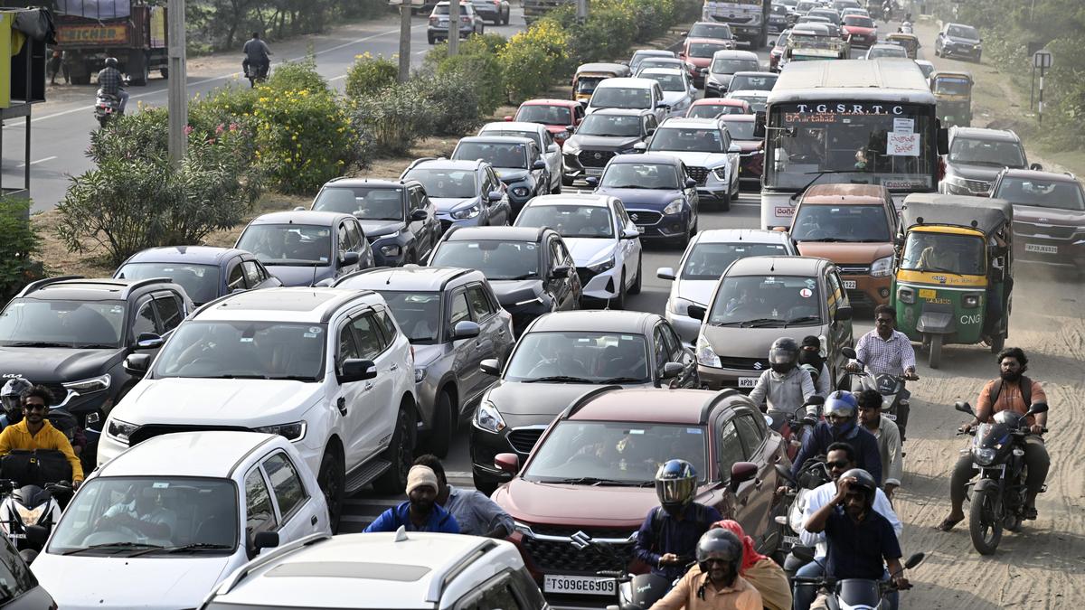 Heavy traffic on Hyderabad-Vijayawada National Highway-65 amid Sankranti rush. | Photo Credit: RAO GN Police deployed surveillance drones along National Highway-65 as traffic snarls continued into the second day of the Sankranti exodus on Saturday (January 10), with tens of thousands of families beginning their annual journey home and turning the highway into a river of vehicles heading towards various districts of Telangana and Andhra Pradesh. Toll fare is being collected at the toll plaza though Telangana government wrote to the Union ministry for a waiver on account of the festival. The festive rush was particularly evident at the Panthangi Toll Plaza, a critical checkpoint on the route. Nalgonda police said the plaza, which typically handles between 15,000 and 20,000 vehicles a day, is likely to record close to 80,000 vehicles by the end of Saturday, a four-fold rise. More than 43,000 vehicles crossed the highway between 6 a.m. and 6 p.m. on Saturday, nearly three times the daily average of around 15,000. The spike began on Friday (January 9) itself, with more than 58,000 vehicles recorded during the 24-hour window from 6 a.m., with traffic volumes peaking during the evening, as per the information shared by the Choutuppal police. To keep traffic moving amid the surge, police deployed two surveillance drones to monitor long stretches of the highway in real time and identify congestion points before they escalated. One drone has been stationed in the Suryapet circle, covering a 15-kilometre stretch from Tekumatla to Gunjalur villages, while another operates in Kodad, monitoring nearly 35 kilometres between Gunjalur circle and Ramapuram X roads. Officials said the aerial feed has helped ground teams respond quickly to slow-moving traffic and minor bottlenecks. Suryapet police deployed two surveillance drones to monitor long stretches of the highway in real time and identify congestion points. | Photo Credit: Special Arrangement Along the Suryapet stretch, police have also deployed additional traffic personnel at 22 key locations, including Tekumatla junction, Rayanigudem and Pillalamarri, where congestion typically builds up during peak hours. Officials said these measures were aimed at preventing breakdowns in traffic flow and responding swiftly to minor incidents before they snowballed into major delays. Traffic diversions have also been put in place near the NH 365BB, with vehicles diverted at Chivvemla and Ailapuram towards Suryapet town to ensure smoother movement amid ongoing construction work and to ease pressure on the main highway. Further east, in Abdullapurmet, police credited the recent anti-encroachments drive along the national highway for a visible improvement in traffic movement. Illegal roadside sheds and temporary structures were cleared with the support of the Roads and Buildings and Revenue departments, and damaged stretches were levelled in anticipation of the festive rush. As a result, average vehicle speeds have increased from about 15 kmph to nearly 45 kmph, offering much-needed relief to weary travellers, said Abdullapurmet Inspector V. Ashok Reddy. Despite the heavy traffic volumes, authorities maintained that the situation remained largely under control. Officials from the Nalgonda police said no traffic jams had been reported on NH-65, though there were a couple of choke points due to flyover construction. Minor congestion was observed up to Chityala, but traffic continued to move steadily without complete standstills. Within Hyderabad city, however, the exodus combined with local activity led to slow-moving traffic on key corridors. Congestion was reported on the stretch from Exhibition Grounds and Nampally towards Dilsukhnagar via Afzalgunj, as well as along the Mehdipatnam corridor. Traffic volumes rise on the Mehdipatnam corridor as residents leave the city ahead of Sankranti celebrations. | Photo Credit: Special Arrangement Traffic officials said the Exhibition Grounds route was particularly busy as it serves both outbound travellers and visitors to the annual Numaish exhibition, drawing large crowds. Areas around LB Nagar Stadium also saw sluggish movement, along with heavy traffic near major transit hubs such as the Mahatma Gandhi Bus Station, JBS Parade Grounds, Secunderabad railway station and Kacheguda. Residents clog key transit hubs in Mehdipatnam ahead of Sankranti celebrations. | Photo Credit: Special Arrangement As the Sankranti weekend unfolds, authorities have urged motorists to plan their journeys, remain patient and follow traffic advisories. Published – January 10, 2026 08:50 pm IST Share this: Click to share on WhatsApp (Opens in new window) WhatsApp Click to share on Facebook (Opens in new window) Facebook Click to share on Threads (Opens in new window) Threads Click to share on X (Opens in new window) X Click to share on Telegram (Opens in new window) Telegram Click to share on LinkedIn (Opens in new window) LinkedIn Click to share on Pinterest (Opens in new window) Pinterest Click to email a link to a friend (Opens in new window) Email More Click to print (Opens in new window) Print Click to share on Reddit (Opens in new window) Reddit Click to share on Tumblr (Opens in new window) Tumblr Click to share on Pocket (Opens in new window) Pocket Click to share on Mastodon (Opens in new window) Mastodon Click to share on Nextdoor (Opens in new window) Nextdoor Click to share on Bluesky (Opens in new window) Bluesky Like this:Like Loading... Post navigation Watch: From 1952 to Today: Why Parasakthi still divides Tamil Nadu Driver dies; six injured after tourist bus hits van in Ranipet