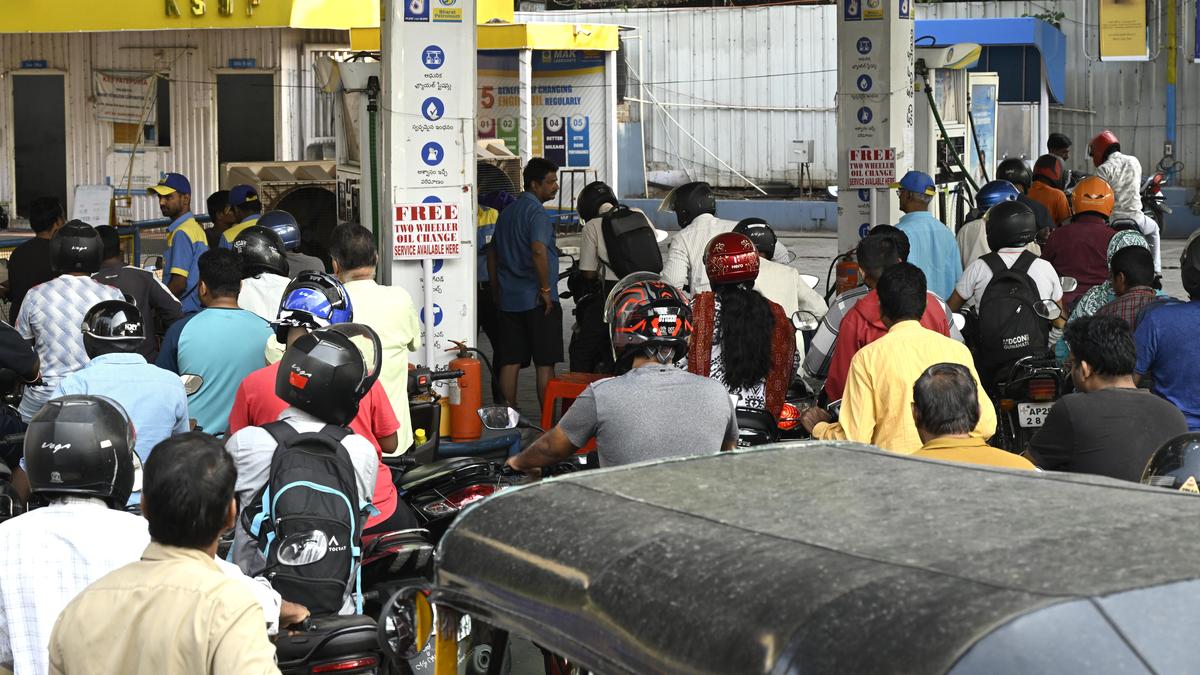 People queue to refuel at a petrol station in Secunderabad on Wednesday (March 25, 2026) | Photo Credit: RAMAKRISHNA G Panic buying triggered by rumours of a fuel shortage has led to a three-fold spike in petrol and diesel sales across Telangana, causing temporary stock exhaustion at several fuel stations, the Telangana Petroleum Dealers Association (TPDA) said on Wednesday (March 25, 2026). It said that adequate fuel stocks are available with HPCL, IOCL and BPCL, and that supply chains are functioning normally. Raising safety concerns, the Association cautioned against storing petrol or diesel in cans or unauthorised containers. It noted that such practices violate Petroleum and Explosives Safety Organisation (PESO) norms and pose serious risks, including fire accidents. Improper storage of fuel, it said, is neither safe nor approved. In a statement, the Association said the circulation of false and misleading information over the past few days prompted people to rush to fuel stations and fill their tanks unnecessarily, leading to an abnormal surge in demand. Speaking to The Hindu, the TPDA general secretary Vinod Vishwanath said the sudden rush witnessed over the last two days was entirely driven by rumours and not due to any disruption in supply. He said the panic-led demand briefly strained stocks at some outlets, but the overall supply situation remains stable. “There is no shortage of petrol or diesel. People need not panic. Supply is continuing as usual, and sales will return to normal levels shortly,” he said, adding that the situation is already beginning to stabilise. Usual stocks at fuel stations Providing an overview of fuel availability, he noted that an average petrol pump in urban areas like Hyderabad typically maintains around 30,000 to 40,000 litres of petrol and about 30,000 litres of diesel. In rural areas, outlets generally stock a minimum of 10,000 litres of petrol and 20,000 litres of diesel. Number of fuel outlets in Telangana The Association highlighted that the Greater Hyderabad Municipal Corporation (GHMC) area has around 600 to 700 fuel outlets, while Telangana as a whole has approximately 3,000 outlets operated by HPCL, IOCL and BPCL, and adequate stocks are available with these companies. Published – March 25, 2026 11:21 am IST Share this: Click to share on WhatsApp (Opens in new window) WhatsApp Click to share on Facebook (Opens in new window) Facebook Click to share on Threads (Opens in new window) Threads Click to share on X (Opens in new window) X Click to share on Telegram (Opens in new window) Telegram Click to share on LinkedIn (Opens in new window) LinkedIn Click to share on Pinterest (Opens in new window) Pinterest Click to email a link to a friend (Opens in new window) Email More Click to print (Opens in new window) Print Click to share on Reddit (Opens in new window) Reddit Click to share on Tumblr (Opens in new window) Tumblr Click to share on Pocket (Opens in new window) Pocket Click to share on Mastodon (Opens in new window) Mastodon Click to share on Nextdoor (Opens in new window) Nextdoor Click to share on Bluesky (Opens in new window) Bluesky Like this:Like Loading... Post navigation EU antitrust chief meets Google, Meta, OpenAI, Amazon CEOs amidst AI scrutiny OpenAI set to raise $10 billion from MGX, Coatue and Thrive, source says