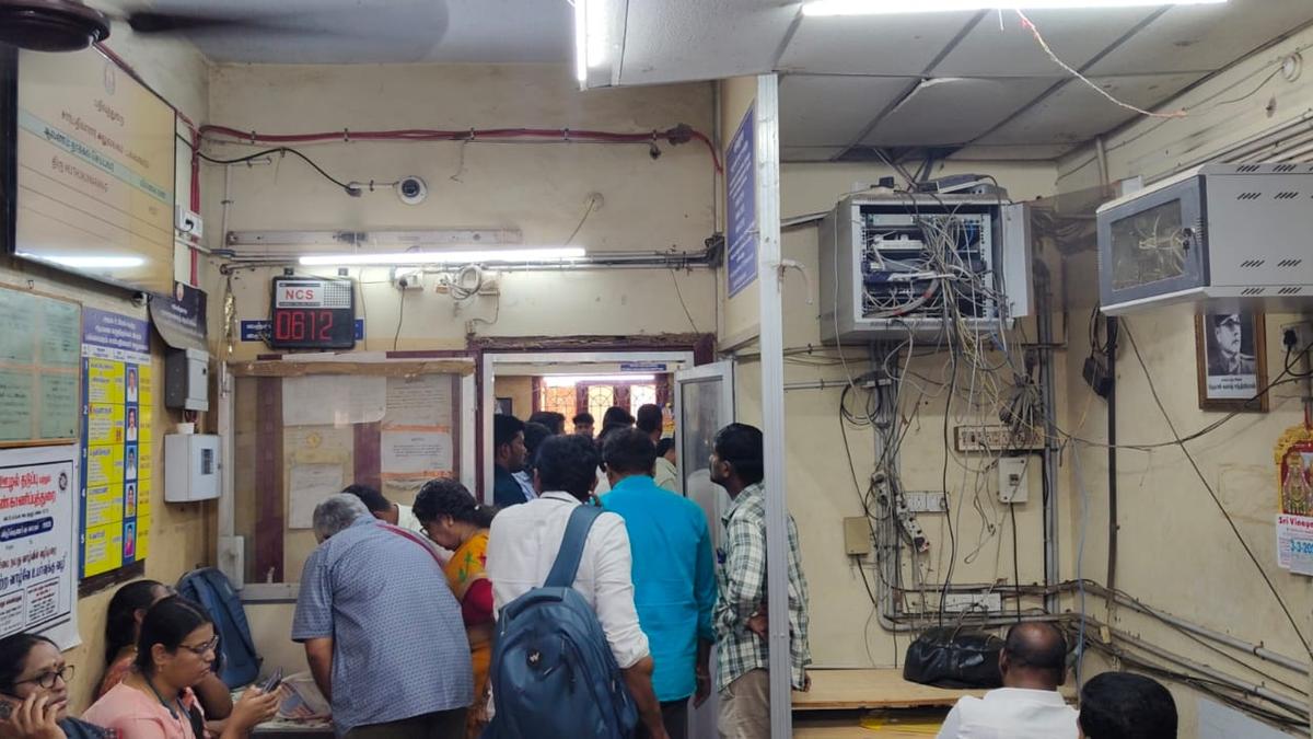 Visitors have raised concerns over severe space constraints and lack of basic amenities at the Pallavaram Sub-Registrar Office located in New Colony, Chromepet. The cramped premises not only delay registration procedures but also lead to crowds spilling onto the street, aggravating traffic congestion along the already narrow road.