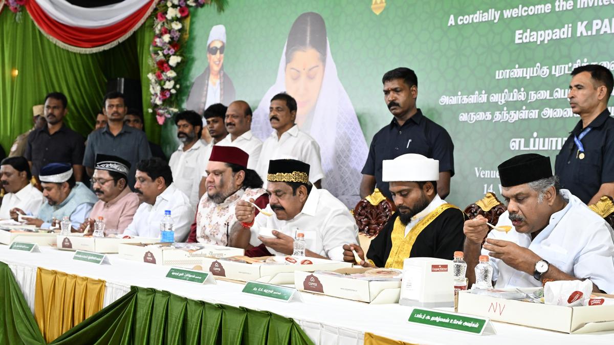 AIADMK general secretary Edappadi K. Palaniswami with other leaders of the NDA at an Iftar event in Egmore on Sunday. | Photo Credit: R. RAGU Neither the AIADMK nor the leaders of its allies held any talks with actor-turned politician Vijay over forging an alliance for the April 23 Assembly election in Tamil Nadu, AIADMK general secretary Edappadi K. Palaniswami categorically said in Chennai on Sunday. Asked if he liked Mr. Vijay to join the AIADMK-led alliance, Mr. Palaniswami said: “As I have already said, neither the AIADMK nor the leaders of its allies have had a talk with the party you are referring to so far.” Flanked by BJP’s State unit president Nainar Nagenthran and AMMK founder T.T.V. Dhinakaran, Mr. Palaniswami was replying to questions during an interaction with reporters after an Iftaar function. To a query on whether more political parties were likely to join the alliance and favourable conditions prevailed for such a scenario, Mr. Palaniswami said: “There are chances.” Published – March 16, 2026 12:53 am IST Share this: Click to share on WhatsApp (Opens in new window) WhatsApp Click to share on Facebook (Opens in new window) Facebook Click to share on Threads (Opens in new window) Threads Click to share on X (Opens in new window) X Click to share on Telegram (Opens in new window) Telegram Click to share on LinkedIn (Opens in new window) LinkedIn Click to share on Pinterest (Opens in new window) Pinterest Click to email a link to a friend (Opens in new window) Email More Click to print (Opens in new window) Print Click to share on Reddit (Opens in new window) Reddit Click to share on Tumblr (Opens in new window) Tumblr Click to share on Pocket (Opens in new window) Pocket Click to share on Mastodon (Opens in new window) Mastodon Click to share on Nextdoor (Opens in new window) Nextdoor Click to share on Bluesky (Opens in new window) Bluesky Like this:Like Loading... Post navigation U.S. attitude to the Kurdish question reflects colonial mindset, says Nilufer Koc Over 30 vehicles stranded amid snowfall in J&K’s Kishtwar; rescue operation under way