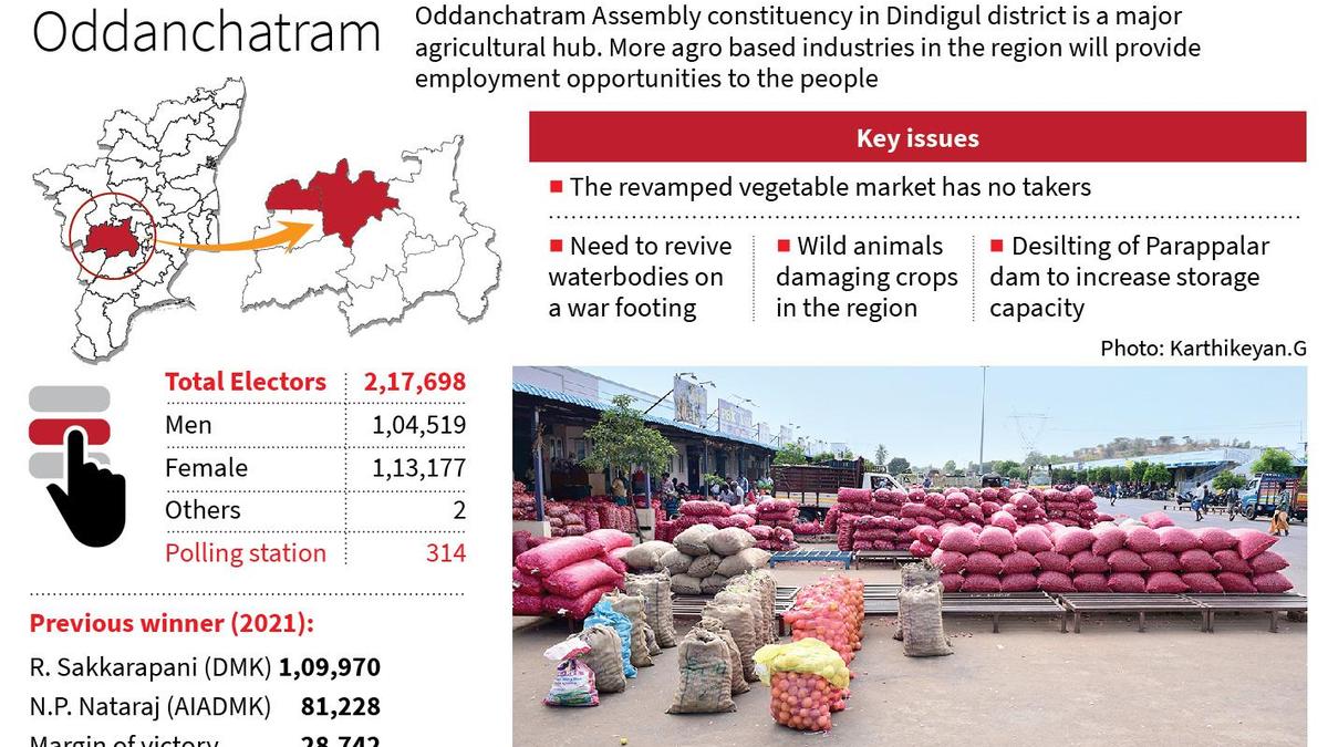 Oddanchatram Assembly constituency in Dindigul district has remained a DMK stronghold for about three decades now. Senior DMK leader R. Sakkarapani has won a total of six times consecutively from the Assembly constituency from the 1996 Assembly election to the 2021 Assembly election. The DMK fared well in the Assembly constituency even prior to the winning streak. Published – April 12, 2026 10:21 pm IST Share this: Click to share on WhatsApp (Opens in new window) WhatsApp Click to share on Facebook (Opens in new window) Facebook Click to share on Threads (Opens in new window) Threads Click to share on X (Opens in new window) X Click to share on Telegram (Opens in new window) Telegram Click to share on LinkedIn (Opens in new window) LinkedIn Click to share on Pinterest (Opens in new window) Pinterest Click to email a link to a friend (Opens in new window) Email More Click to print (Opens in new window) Print Click to share on Reddit (Opens in new window) Reddit Click to share on Tumblr (Opens in new window) Tumblr Click to share on Pocket (Opens in new window) Pocket Click to share on Mastodon (Opens in new window) Mastodon Click to share on Nextdoor (Opens in new window) Nextdoor Click to share on Bluesky (Opens in new window) Bluesky Like this:Like Loading... Post navigation Home voting for senior citizens and PwDs under way in Coimbatore Six children drown in four days in ASR district