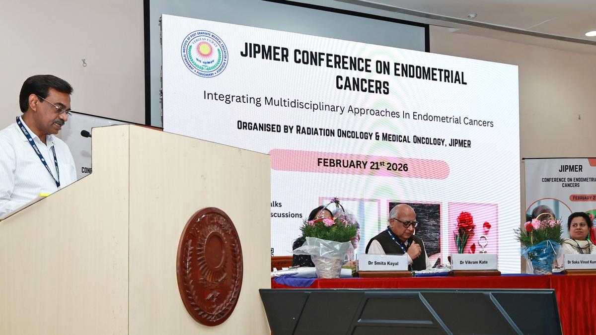 Experts from India and abroad at the conference on endometrial cancers organised by Jipmer. | Photo Credit: SPECIAL ARRANGEMENT Oncologists have highlighted the role of multidisciplinary cancer care in managing endometrial cancers, which has emerged as one of the fastest-evolving gynaecologic malignancies, at a recent conference hosted by JIPMER. The conference on “Integrating Multidisciplinary Approaches in Endometrial Cancers,” co-hosted by the Departments of Radiation Oncology and Medical Oncology at JIPMER, assembled experts from across India and abroad to deliberate on evidence-based, collaborative strategies aimed at improving outcomes in endometrial cancer, a press note said. The theme of the meeting was conceived in response to the rapidly evolving landscape of endometrial cancer diagnosis and treatment. Advances in molecular classification, precision imaging, minimally invasive surgery, targeted therapies, immunotherapy, and refined radiation techniques have fundamentally reshaped treatment paradigms, JIPMER said. Contemporary management requires seamless coordination between gynaecologic oncologists, radiation oncologists, medical oncologists, radiologists, pathologists, and supportive care teams. In his inaugural address, Saka Vinod Kumar, JIPMER Medical Superintendent, emphasised how essential multidisciplinary tumour boards and coordinated institutional protocols are to ensure comprehensive and equitable cancer care in tertiary referral centres. Vikram Kate, Dean (Academic) and Kadambari D, Dean (Research) at JIPMER, also spoke. Shyama Prem S, organising chairperson and Professor and Head of Radiation Oncology, highlighted the importance of translating emerging scientific evidence into real-world clinical practice. Smita Kayal, Professor of Medical Oncology and Kannan P, Assistant Professor, Radiation Oncology, also addressed delegates. The event featured eminent national faculty from leading cancer centres, including Tata Memorial Hospital, Mumbai, Christian Medical College, Vellore, Regional Cancer Centre in Thiruvananthapuram, and Postgraduate Institute of Medical Education and Research, Chandīgarh. International expert Peter Hoskin, Professor of Clinical Oncology at The Christie NHS Foundation Trust and Mount Vernon Cancer Centre, United Kingdom (virtual mode), joined the proceedings in virtual mode. Scientific deliberations covered risk stratification, advances in imaging, molecular and clinicopathological classification, surgical innovations, radiation therapy evidence, including landmark trials, brachytherapy techniques, and management of advanced, recurrent, and metastatic disease. The event also included an interactive panel discussions and a quiz programme. Published – March 06, 2026 12:27 am IST Share this: Click to share on WhatsApp (Opens in new window) WhatsApp Click to share on Facebook (Opens in new window) Facebook Click to share on Threads (Opens in new window) Threads Click to share on X (Opens in new window) X Click to share on Telegram (Opens in new window) Telegram Click to share on LinkedIn (Opens in new window) LinkedIn Click to share on Pinterest (Opens in new window) Pinterest Click to email a link to a friend (Opens in new window) Email More Click to print (Opens in new window) Print Click to share on Reddit (Opens in new window) Reddit Click to share on Tumblr (Opens in new window) Tumblr Click to share on Pocket (Opens in new window) Pocket Click to share on Mastodon (Opens in new window) Mastodon Click to share on Nextdoor (Opens in new window) Nextdoor Click to share on Bluesky (Opens in new window) Bluesky Like this:Like Loading... Post navigation Migrant worker held for assaulting TTE at Jolarpet railway station The hidden price of being a woman