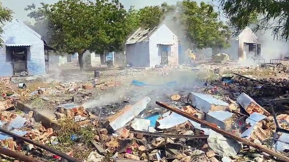Debris after an explosion occurred at a fireworks factory in Virudhunagar district on Monday | Photo Credit: ANI A worker, M. Pandiyarajan, 38, was killed and two others were critically injured in an explosion at Excel Fireworks at Chathrapatti near Vembakottai in Virudhunagar district on Monday (April 13, 2026). Fire and Rescue Services personnel said that P. Rajkumar, 42, and S. Ramesh, 38, sustained serious burn injuries of 100% and 80%, respectively, in the incident. Published – April 13, 2026 03:54 pm IST Share this: Click to share on WhatsApp (Opens in new window) WhatsApp Click to share on Facebook (Opens in new window) Facebook Click to share on Threads (Opens in new window) Threads Click to share on X (Opens in new window) X Click to share on Telegram (Opens in new window) Telegram Click to share on LinkedIn (Opens in new window) LinkedIn Click to share on Pinterest (Opens in new window) Pinterest Click to email a link to a friend (Opens in new window) Email More Click to print (Opens in new window) Print Click to share on Reddit (Opens in new window) Reddit Click to share on Tumblr (Opens in new window) Tumblr Click to share on Pocket (Opens in new window) Pocket Click to share on Mastodon (Opens in new window) Mastodon Click to share on Nextdoor (Opens in new window) Nextdoor Click to share on Bluesky (Opens in new window) Bluesky Like this:Like Loading... Post navigation Rajasthan Assembly, high court, sessions court receive bomb threats; nothing suspicious found Karnataka’s financial health is stronger than that of Central Government: CM Siddaramaiah