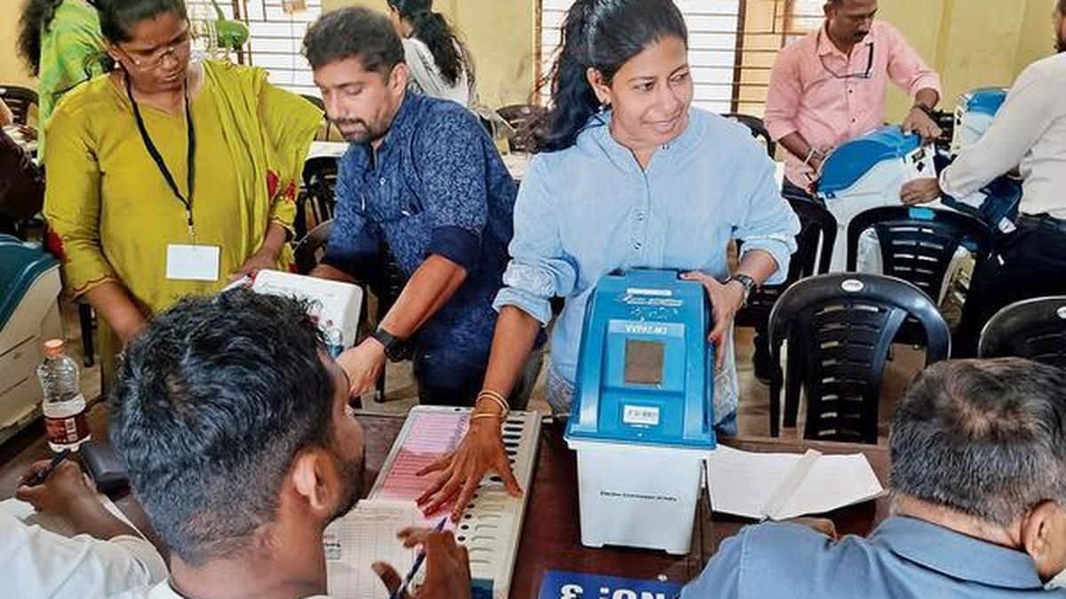Mock polling in progress at GVHSS in Kannur ahead of the Assembly election. File