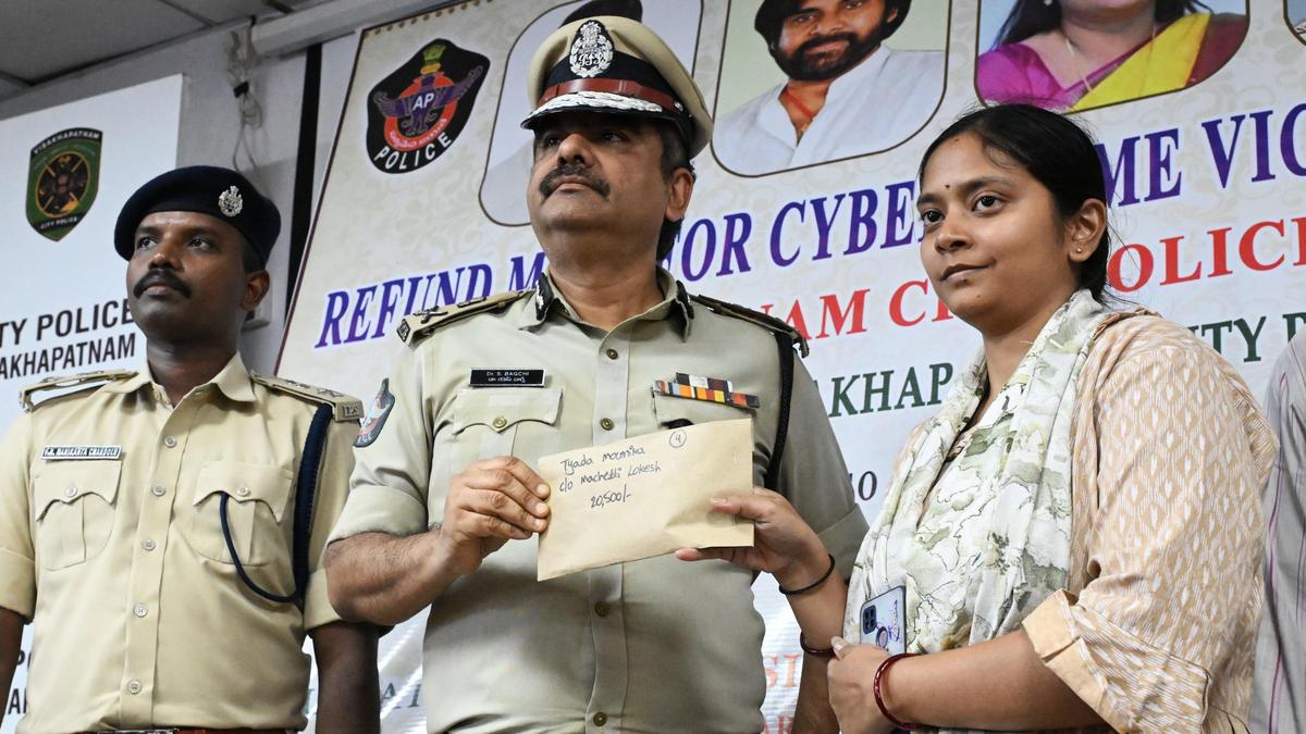 Police Commissioner Shankhabrata Bagchi handing over money lost in cyber fraud to a victim in Visakhapatnam on Wednesday. | Photo Credit: V. RAJU The city police have refunded ₹4.98 crore to citizens who lost money to cyber frauds so far this year. With this, the police have achieved a milestone by recovering and returning the highest amount of money to cyber-fraud victims in the State, said Police Commissioner Shankhabrata Bagchi. Addressing the media in Visakhapatnam on Wednesday, Mr Bagchi said that since 2019, the police have refunded ₹22.47 crore to 1,240 victims who had lost money to cyber frauds. He noted that more than ₹20 crore of this amount has been refunded since 2024. Published – March 11, 2026 08:21 pm IST Share this: Click to share on WhatsApp (Opens in new window) WhatsApp Click to share on Facebook (Opens in new window) Facebook Click to share on Threads (Opens in new window) Threads Click to share on X (Opens in new window) X Click to share on Telegram (Opens in new window) Telegram Click to share on LinkedIn (Opens in new window) LinkedIn Click to share on Pinterest (Opens in new window) Pinterest Click to email a link to a friend (Opens in new window) Email More Click to print (Opens in new window) Print Click to share on Reddit (Opens in new window) Reddit Click to share on Tumblr (Opens in new window) Tumblr Click to share on Pocket (Opens in new window) Pocket Click to share on Mastodon (Opens in new window) Mastodon Click to share on Nextdoor (Opens in new window) Nextdoor Click to share on Bluesky (Opens in new window) Bluesky Like this:Like Loading... Post navigation LPG shortage leaves small eateries, NGOs on the edge Kadapa MP seeks new railway line to boost local economy