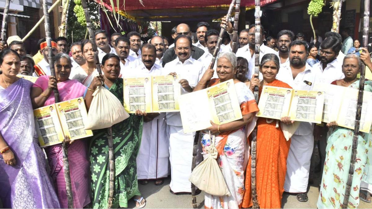 In Salem district, 10.88 ration card holders will receive these gift hampers worth ₹12.14 crore and ₹326.47 crore in cash. On Thursday, 200 cardholders received the gift hampers with cash and from Friday (January 9, 2026), 300 cardholders (150 in the morning and 150 in the afternoon), will receive the gift hamper. The fair price shop workers are distributing tokens to the cardholders at their houses, the Minister added.