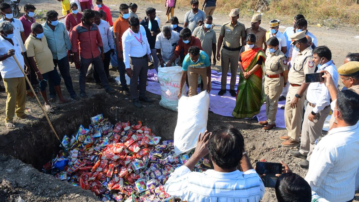 Banned tobacco substances being destroyed by officials in Perambalur on Wednesday.