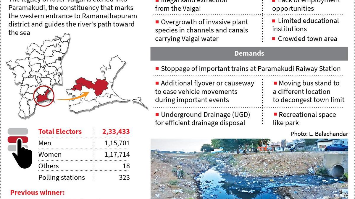 The Paramakudi (reserved) constituency which territorially marks the beginning of the Ramanathapuram district on the west of the district also carries the legacy of the Vaigai river, which flows through this gateway toward the Palk Strait.