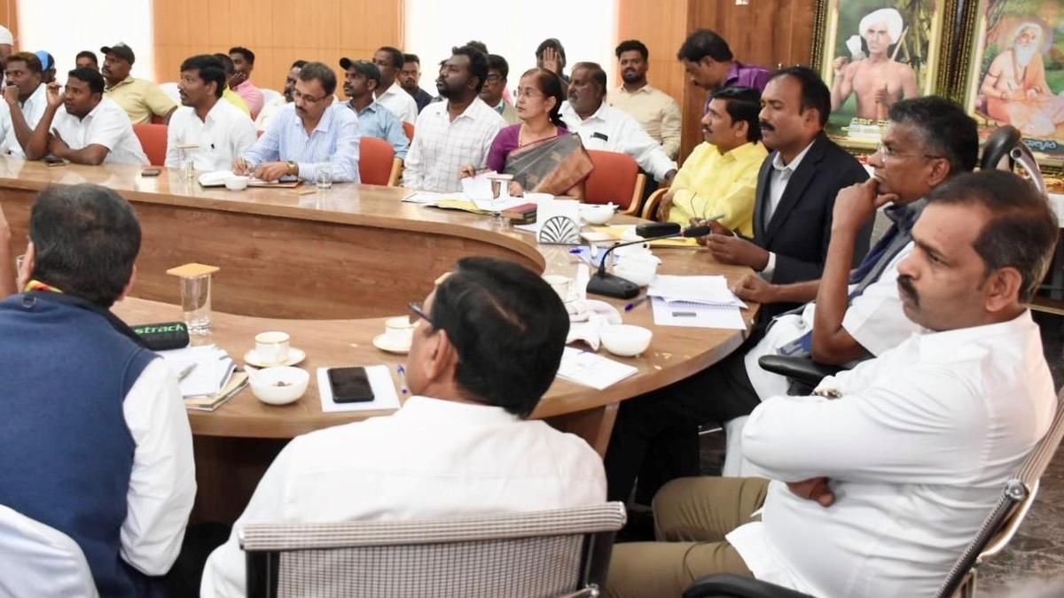 Minister for Public Works Satish Jarkiholi presiding over a meeting in Mysuru on January 5.