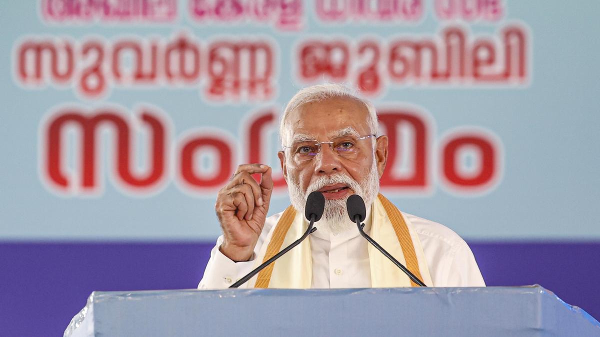 Prime Minister Narendra Modi addresses a gathering in Kochi on Wednesday.