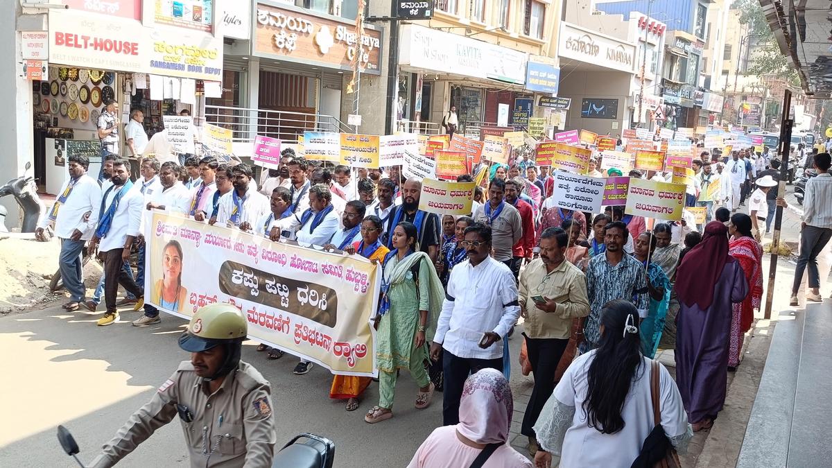 Condemning the honour killing in which a pregnant woman, Manya Doddamani, was murdered by her family, and demanding the establishment of a fast-track court to punish the guilty at the earliest, members of various Dalit organisations took out a protest march and organised a public meeting in Hubballi on Monday.