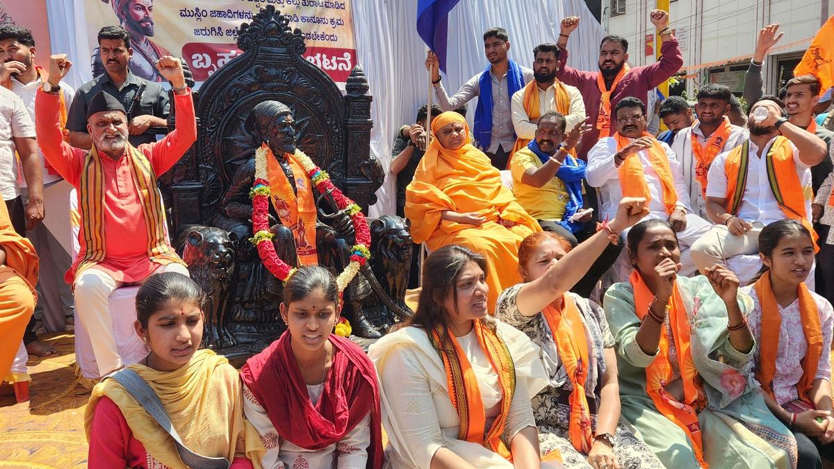 Members of various organisations, mainly Hindutva outfits, staged a protest at Ambedkar Circle in Hubballi on Thursday condemning the recent stone-throwing incident during a Shivaji Jayanti procession in Bagalkot.