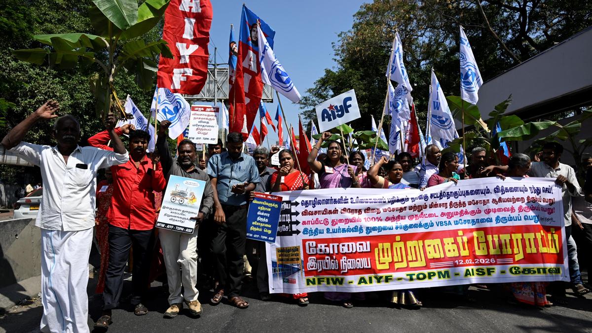 Close to 4,500 people took part in protest organised in Coimbatore and Tiruppur districts on Thursday (February 12, 2026) against the Central government for its anti-labour and anti-farmer policies.