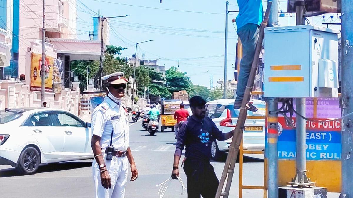 CCTV cameras being installed at Ajantha Signal as part of security arrangements for Prime Minister’s visit to Puducherry. | Photo Credit: SPECIAL ARRANGEMENT The town and adjoining areas of Puducherry have come under a tight security cover for Prime Minister Narendra Modi’s roadshow along the stretch from Ajantha Theatre Junction to Anna Thidal on Friday. Around 1,500 personnel from the territorial police, besides those from Central Armed Police Forces, will be deployed for traffic and law and order duty during the Prime Minister’s visit. The traffic police have imposed restrictions on movement of vehicles in several parts of the town. A police release here said no vehicular traffic would be permitted on the roads forming part of the VVIP route. Movement of all light and heavy motor vehicles will be restricted from Lawspet Airport Road upto Latha Steel House Junction and from Sivaji Statue Junction to Rajiv Gandhi Square on East Coast Road. All buses, tempos and other vehicles proceeding via Bussy Street should take a U-turn at Cuddalore Road-Venkata Subbiah Reddiar Statue Junction and proceed towards their destinations via Nellithope- Indira Gandhi Square route. Published – April 02, 2026 09:35 pm IST Share this: Click to share on WhatsApp (Opens in new window) WhatsApp Click to share on Facebook (Opens in new window) Facebook Click to share on Threads (Opens in new window) Threads Click to share on X (Opens in new window) X Click to share on Telegram (Opens in new window) Telegram Click to share on LinkedIn (Opens in new window) LinkedIn Click to share on Pinterest (Opens in new window) Pinterest Click to email a link to a friend (Opens in new window) Email More Click to print (Opens in new window) Print Click to share on Reddit (Opens in new window) Reddit Click to share on Tumblr (Opens in new window) Tumblr Click to share on Pocket (Opens in new window) Pocket Click to share on Mastodon (Opens in new window) Mastodon Click to share on Nextdoor (Opens in new window) Nextdoor Click to share on Bluesky (Opens in new window) Bluesky Like this:Like Loading... Post navigation HC directs Maharashtra govt. to file reply to petition challenging scrapping of 5% Muslim quota Tamil Nadu’s actor-politicians and their crusade against corruption