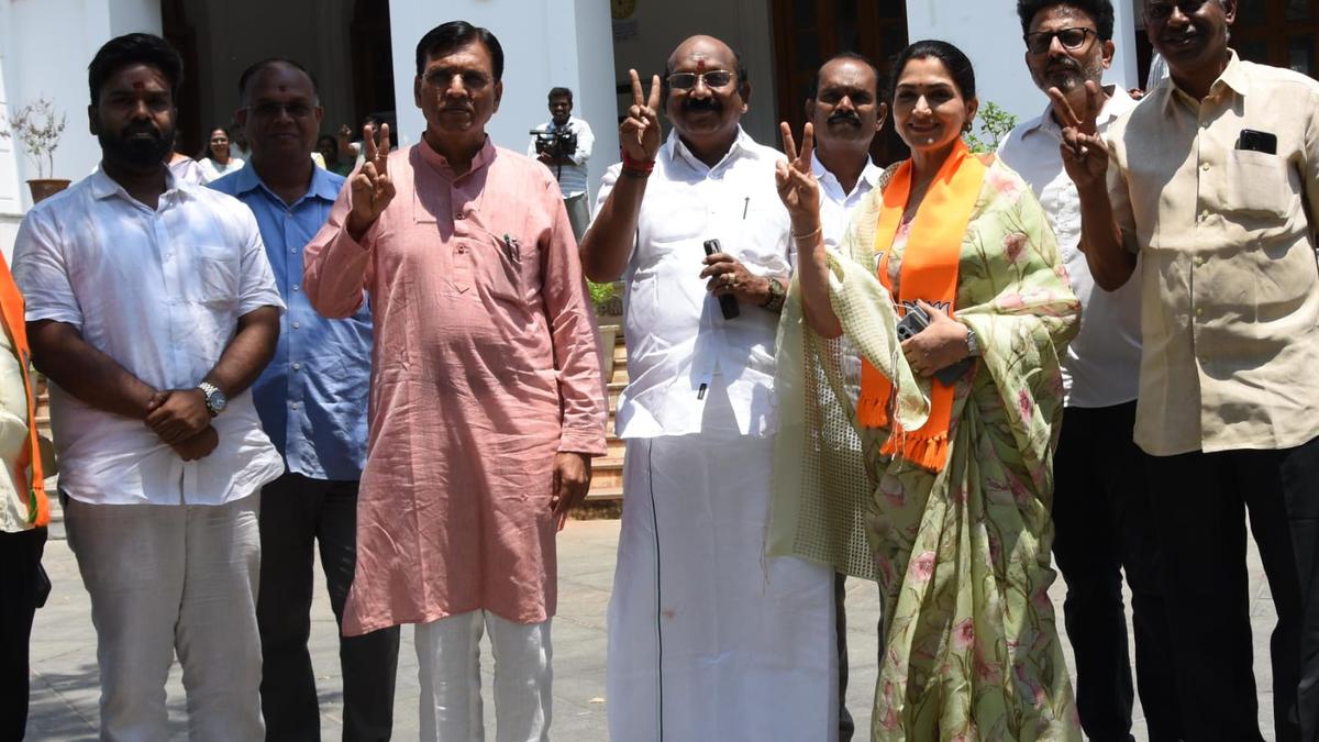 BJP president V. P. Ramalingam along with Union Minister Mansukh Mandaviya after filing nomination papers in Raj Bhavan constituency. | Photo Credit: SPECIAL ARRANGEMENT BJP Puducherry unit president V. P. Ramalingam filed nomination papers in Raj Bhavan Assembly constituency on Monday. He was accompanied by Union Minister Mansukh Mandaviya and BJP Tamil Nadu unit vice-president Khushbu Sundar. Party workers took out a procession before Mr. Ramalingam filed the papers at Mairie Building (Pondicherry Municipality office). The Raj Bhavan constituency was contested by the BJP’s ally, the All India N. R. Congress in the 2021 Assembly polls. Published – March 23, 2026 08:24 pm IST Share this: Click to share on WhatsApp (Opens in new window) WhatsApp Click to share on Facebook (Opens in new window) Facebook Click to share on Threads (Opens in new window) Threads Click to share on X (Opens in new window) X Click to share on Telegram (Opens in new window) Telegram Click to share on LinkedIn (Opens in new window) LinkedIn Click to share on Pinterest (Opens in new window) Pinterest Click to email a link to a friend (Opens in new window) Email More Click to print (Opens in new window) Print Click to share on Reddit (Opens in new window) Reddit Click to share on Tumblr (Opens in new window) Tumblr Click to share on Pocket (Opens in new window) Pocket Click to share on Mastodon (Opens in new window) Mastodon Click to share on Nextdoor (Opens in new window) Nextdoor Click to share on Bluesky (Opens in new window) Bluesky Like this:Like Loading... Post navigation Opposition tears Bill proposing ballot papers in panchayat elections, walks out Kerala Assembly Elections 2026: In Kalamassery, a battle to retain stature, legacy