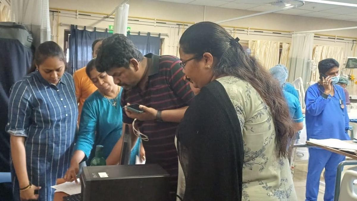 Medical and Health Department officials documenting anuria cases in a private hospital in Rajamahendravaram.