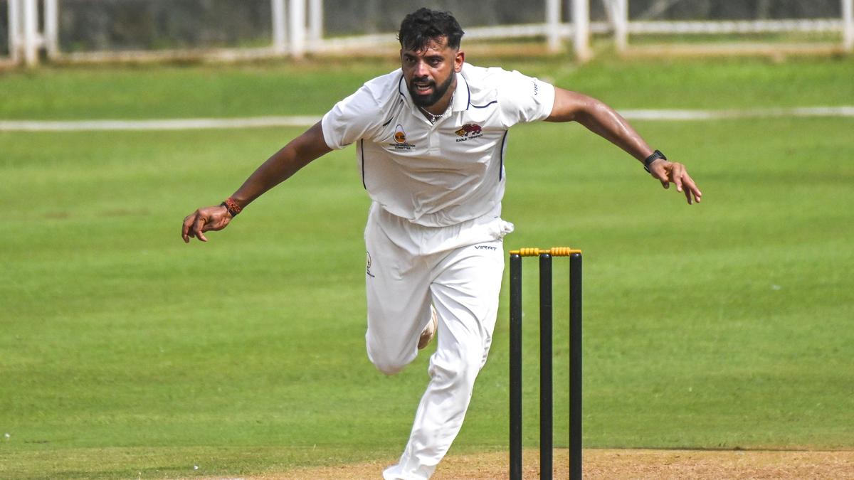 Mumbai’s Mohit Avasthi consistently hit the right channel, drawing false strokes from Delhi’s middle order. | Photo Credit: File photo: EMMANUAL YOGINI Sanat Sangwan made his maiden outing against Mumbai a memorable one with a fluent hundred, but Mohit Avasthi’s incisive spell ensured the home side finished the opening day of their Ranji Trophy Group D tie firmly on top at the Sharad Pawar Cricket Academy ground here on Thursday. Riding on Avasthi’s sixth five-wicket haul in First Class cricket, Mumbai bowled Delhi out for 221 towards the fag end of the day. Divij Mehra then provided Delhi a late breakthrough by inducing an edge from Akash Anand before play was called off due to poor visibility caused by dusty conditions during the extended half-hour. Asked to bat on a surface with a greenish tinge, Delhi endured an early setback when Tushar Deshpande hurried one through Dhruv Kaushik’s defence. But thereafter, Mumbai’s pace trio strayed short and allowed the left-handed pair of Sangwan and Vaibhav Kandpal to settle in. The duo batted with freedom, driving confidently and handling the short ball with ease. Delhi’s Sanat Sangwan in action. | Photo Credit: File photo: SHIV KUMAR PUSHPAKAR Sangwan, despite taking a couple of blows to the ribs early on, grew in confidence and showcased a wide range of strokes, including lofted hits once spin was introduced. The second-wicket stand crossed the three-figure mark before Shams Mulani broke through, getting one to turn and bounce to have Kandpal taken at leg-gully. That wicket opened the door for Avasthi, who turned the match decisively in Mumbai’s favour. Bowling a probing spell of 6-0-17-3, the swing bowler consistently hit the right channel, drawing false strokes from Delhi’s middle order. In the space of seven Avasthi deliveries, Aryan Rana, captain Ayush Doseja and Sumit Mathur all nicked behind, as Delhi slumped from 146 for two to 152 for five. Sangwan marched on regardless, driving Deshpande through the covers to bring up his third century of the season. However, soon after tea, he failed to get to the pitch of one from Mulani, toe-ending a lofted shot that Deshpande caught superbly while running backwards from mid-wicket. Mumbai bowler Mohit Avasthi in action . | Photo Credit: File photo: EMMANUAL YOGINI Avasthi then wrapped up the tail to complete a well-deserved five-for, even as deteriorating air quality — caused by construction dust around the ground — forced several Mumbai players to don masks. The scores: Delhi – 1st innings: Sanat Sangwan c Deshpande b Mulani 118, Dhruv Kaushik b Deshpande 7, Vaibhav Kandpal c Sarfaraz b Mulani 32, Aryan Rana c Sarfaraz b Avasthi 10, Ayush Doseja c Akash b Avasthi 0, Sumit Mathur c Akash b Avasthi 2, Pranav Rajvanshi c Herwadkar b Deshpande 39, Rahul Chaudhary (run out) 4, Divij Mehra c Akash b Avasthi 1, Rahul Dagar (not out) 3, Money Grewal c Sarfaraz b Avasthi 0; Extras (lb-1, nb-4): 5; Total (in 76.4 overs): 221. Fall of wickets: 1-11, 2-111, 3-146, 4-146, 5-152, 6-197, 7-202, 8-218, 9-218. Mumbai bowling: Deshpande 15-4-36-2, Avasthi 16.4-2-62-5, Mulani 20-2-45-2, Himanshu 11-3-26-0, Tarmale 14-2-51-0. Mumbai – 1st innings: Akhil Herwadkar (batting) 4, Akash Anand c Rana b Mehra 4, Tushar Deshpande (batting) 0; Extras (lb-5): 5; Total (for 1 wkt., in 3 overs): 13. Fall of wicket: 1-13. Delhi bowling: Mehra 2-1-4-1, Grewal 1-0-4-0. Published – January 29, 2026 06:26 pm IST Share this: Click to share on WhatsApp (Opens in new window) WhatsApp Click to share on Facebook (Opens in new window) Facebook Click to share on Threads (Opens in new window) Threads Click to share on X (Opens in new window) X Click to share on Telegram (Opens in new window) Telegram Click to share on LinkedIn (Opens in new window) LinkedIn Click to share on Pinterest (Opens in new window) Pinterest Click to email a link to a friend (Opens in new window) Email More Click to print (Opens in new window) Print Click to share on Reddit (Opens in new window) Reddit Click to share on Tumblr (Opens in new window) Tumblr Click to share on Pocket (Opens in new window) Pocket Click to share on Mastodon (Opens in new window) Mastodon Click to share on Nextdoor (Opens in new window) Nextdoor Click to share on Bluesky (Opens in new window) Bluesky Like this:Like Loading... Post navigation Madurai district police set up Measurement Capturing Unit Congress workers gather outside Lokayukta police office in Mysuru with ‘Satyameva Jayate’ placards