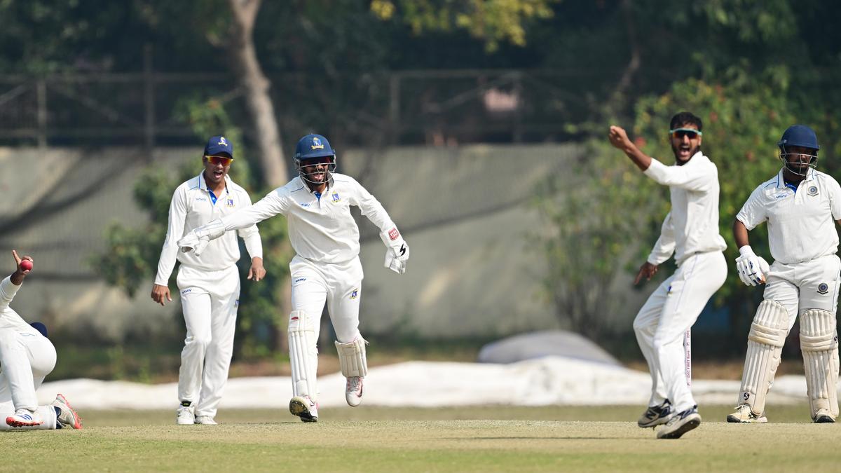 Sealing the deal: Shahbaz & Co. ensured Bengal go into the semifinal on the back of a polished performance. | Photo Credit: RITU RAJ KONWAR A dominant Bengal outplayed Andhra by an innings and 90 runs to continue its winning momentum and advance to the Ranji Trophy semifinals in style at the Bengal Cricket Academy ground here on Tuesday. Andhra, resuming its second innings at 64 for three, was bowled out for 244 as the host, boosted by Shahbaz Ahmed’s four-wicket haul, completed the formalities inside two sessions on the final day of the quarterfinal contest and set up a last-four clash with Jammu and Kashmir at the same venue. Bengal last played in the semifinals in the 2022-23 season. Since the result of the match was a foregone conclusion, Andhra batters resisted in their bid to avoid an outright defeat. However, with little to gain and batter K.S. Bharat nursing an injury, it was difficult for the tourists to put up a spirited fight. Shahbaz, who had taken a wicket overnight, provided the breakthrough in the morning session by removing Andhra skipper Ricky Bhui, who was brilliantly caught at silly point. The following two overs produced two more wickets with Suraj Jaiswal trapping K.V. Sasikanth lbw and Shahbaz having Saurabh Kumar caught at square-leg. With Bengal opting to give its pacers a break, the strong-willed Nitish Reddy (90, 144b, 7×4, 2×6), who played some fine shots on either side, batted defiantly to add 57 with K.S. Raju and 85 with T. Vijay (46, 61b, 6×4, 2×6). Part-time leg-spinner Anustup Majumdar dismissed Raju at the stroke of lunch. The Nitish-Vijay partnership tested Bengal’s patience before Nitish’s soft dismissal off Shahbaz charged up the home side. Sumanta Gupta captured Vijay’s wicket to trigger celebrations as Bharat chose not to bat. Captain Abhimanyu Easwaran credited Bengal’s team effort. “The team is peaking at the right time. We are winning important moments this year,” he said, lauding all the players, including Akash Deep, who performed despite running a fever. The scores: Andhra – 1st innings: 295. Bengal – 1st innings: 629. Andhra – 2nd innings: C.R. Gnaneshwar b Jaiswal 20, Abhishek Reddy b Akash 5, Shaik Rasheed st. Gandhi b Shahbaz 8, Ricky Bhui c (sub) Subham b Shahbaz 30, Nitish Reddy c & b Shahbaz 90, K.V. Sasikanth lbw b Jaiswal 0, Saurabh Kumar c Abhimanyu b Shahbaz 1, K.S. Raju c Chatterjee b Majumdar 25, T. Vijay c (sub) Rahul b Sumanta 46, K. Saiteja (not out) 0, K.S. Bharat (absent hurt) 0; Extras (b-4, lb-5, nb-9, w-1): 19; Total (in 72.2 overs): 244. Fall of wickets: 1-16, 2-43, 3-45, 4-92, 5-93, 6-96, 7-153, 8-238, 9-244. Bengal bowling: Mukesh 9-2-23-0, Akash 8-2-13-1, Jaiswal 15-3-42-2, Shami 3-1-7-0, Shahbaz 24-3-72-4, Sumanta 5.2-0-35-1, Majumdar 8-1-43-1. Published – February 10, 2026 06:26 pm IST Share this: Click to share on WhatsApp (Opens in new window) WhatsApp Click to share on Facebook (Opens in new window) Facebook Click to share on Threads (Opens in new window) Threads Click to share on X (Opens in new window) X Click to share on Telegram (Opens in new window) Telegram Click to share on LinkedIn (Opens in new window) LinkedIn Click to share on Pinterest (Opens in new window) Pinterest Click to email a link to a friend (Opens in new window) Email More Click to print (Opens in new window) Print Click to share on Reddit (Opens in new window) Reddit Click to share on Tumblr (Opens in new window) Tumblr Click to share on Pocket (Opens in new window) Pocket Click to share on Mastodon (Opens in new window) Mastodon Click to share on Nextdoor (Opens in new window) Nextdoor Click to share on Bluesky (Opens in new window) Bluesky Like this:Like Loading... Post navigation Farmer applications in crop, weather insurance schemes rose in Dakshina Kannada over five years: Agriculture Ministry A.P. CM Naidu meets Sachin Tendulkar at Delhi airport
