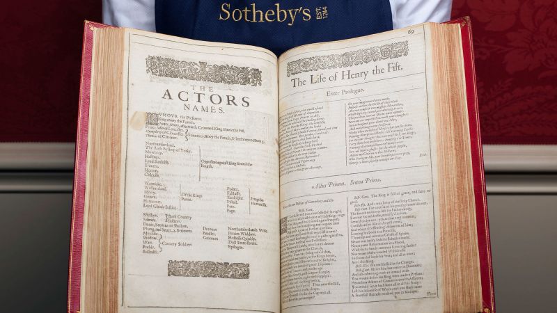 London AP — A set of the first four editions of William Shakespeare’s collected works is expected to sell for up to £4.5 million ($6 million) at auction next month. Sotheby’s auction house announced the sale on Wednesday, Shakespeare’s 461st birthday. It said the May 23 sale will be the first time since 1989 that a set of the First, Second, Third and Fourth Folios has been offered at auction as a single lot. The auction house estimated the sale price at between £3.5 million and £4.5 million. After Shakespeare’s death in 1616, his plays were collected into a single volume by his friends John Heminges and Henry Condell, actors and shareholders in the playwright’s troupe, the King’s Men. The First Folio — fully titled “Mr. William Shakespeares Comedies, Histories & Tragedies” — contained 36 plays, of which half were published there for the first time. Without the book, scholars say, plays including “Macbeth,” “The Tempest” and “Twelfth Night” might have been lost. Sotheby’s called the volume “without question the most significant publication in the history of English literature.” About 750 copies were printed in 1623, of which about 230 are known to survive. All but a few are in museums, universities or libraries. One of the few First Folios in private hands sold for $9.9 million at an auction in 2020. The First Folio proved successful enough that an updated edition, the Second Folio, was published in 1632, a third in 1663 and a fourth in 1685. Related video: How do auctions really work? Related video: How do auctions really work? 03:09 Although the First Folio is regarded as the most valuable, the third is the rarest, with 182 copies known to survive. It is believed the third book’s rarity is because some of the stock was destroyed in the Great Fire of London in 1666. The Third Folio included seven additional plays, but only one — “Pericles, Prince of Tyre” — is believed to be by Shakespeare. Share this: Click to share on WhatsApp (Opens in new window) WhatsApp Click to share on Facebook (Opens in new window) Facebook Click to share on Threads (Opens in new window) Threads Click to share on X (Opens in new window) X Click to share on Telegram (Opens in new window) Telegram Click to share on LinkedIn (Opens in new window) LinkedIn Click to share on Pinterest (Opens in new window) Pinterest Click to email a link to a friend (Opens in new window) Email More Click to print (Opens in new window) Print Click to share on Reddit (Opens in new window) Reddit Click to share on Tumblr (Opens in new window) Tumblr Click to share on Pocket (Opens in new window) Pocket Click to share on Mastodon (Opens in new window) Mastodon Click to share on Nextdoor (Opens in new window) Nextdoor Click to share on Bluesky (Opens in new window) Bluesky Like this:Like Loading... Post navigation Russia launches deadly strikes on Ukrainian capital Kyiv as Trump accuses Zelensky of harming peace talks What to know about the Trump administration task force targeting Harvard