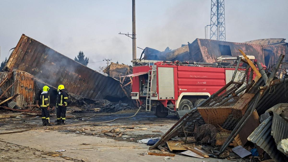 Firefighters stand next to a fire truck at the site of a drug users rehabilitation hospital destroyed in what the Taliban said was a Pakistani air strike in Kabul, Afghanistan, March 17, 2026.