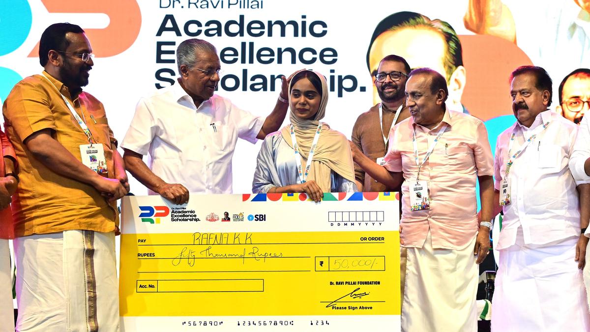 Chief Minister Pinarayi Vijayan and industrialist Ravi Pillai distributing scholarship cheque to a beneficiary during ‘Dr. Ravi Pillai Academic Excellence Scholarship’ programme held at Nishagandhi auditorium in Thiruvananthapuram on Wednesday. | Photo Credit: NIRMAL HARINDRAN “Dr. Ravi Pillai Academic Excellence Scholarship” will provide wide opportunities for academic achievements, Chief Minister Pinarayi Vijayan has said. He was speaking after inaugurating a function for distribution of the scholarships at Nishangandhi auditorium here on Wednesday. The Chief Minister said today the education sector in Kerala was a model for the country. However, the State had a dark phase where the education right was denied to many. The struggles by social reformers and national, progressive, and political movements led to the formation of a united Kerala in which the first government led by E.M.S. Namboodiripad scrapped fee to make education free up to upper primary. The second EMS government made secondary education free too. Government interventions in the higher education sector also paved the way for development of education in the State. Continuing these efforts, the government decided to make education free up to the graduate level, the Chief Minister said. He urged students to be vigilant against attempts to promote caste-religious enmity. Students should retain their humanity to work for the good of society. They must resist drugs and pledge not to engage in substance abuse, he said. First phase In the first phase, scholarships to the tune of ₹10 crore will be distributed to 1,501 students. An amount of ₹525 crore for the next 50 years had been set aside for the scheme, being implemented by industrialist Ravi Pillai as part of social responsibility. The Chief Minister noted that though Mr. Pillai was a prominent name globally, the scholarship scheme for students was a testimony to his ties with the State. The scholarships would help students from economically weak backgrounds to reach for higher education opportunities, he said. The scholarship will be given by the Dr.Ravi Pillai Foundation in association with NoRKA Roots to students from secondary school level to professional colleges. At the higher secondary level, 1,100 students will get ₹50,000 each. As many as 200 undergraduate students will get ₹1 lakh each, and 200 postgraduate students will get ₹1.25 lakh each. Minister for Revenue K. Rajan presided over the function. Mr. Pillai, who is also the NoRKA director, and NoRKA executive vice-chairperson P. Sreeramakrishnan were present. Published – February 11, 2026 08:53 pm IST Share this: Click to share on WhatsApp (Opens in new window) WhatsApp Click to share on Facebook (Opens in new window) Facebook Click to share on Threads (Opens in new window) Threads Click to share on X (Opens in new window) X Click to share on Telegram (Opens in new window) Telegram Click to share on LinkedIn (Opens in new window) LinkedIn Click to share on Pinterest (Opens in new window) Pinterest Click to email a link to a friend (Opens in new window) Email More Click to print (Opens in new window) Print Click to share on Reddit (Opens in new window) Reddit Click to share on Tumblr (Opens in new window) Tumblr Click to share on Pocket (Opens in new window) Pocket Click to share on Mastodon (Opens in new window) Mastodon Click to share on Nextdoor (Opens in new window) Nextdoor Click to share on Bluesky (Opens in new window) Bluesky Like this:Like Loading... Post navigation Curtains go up for VAIGA 2026 fest at Anayara World Market Amid heated debate, a light-hearted exchange between Opposition and Chair