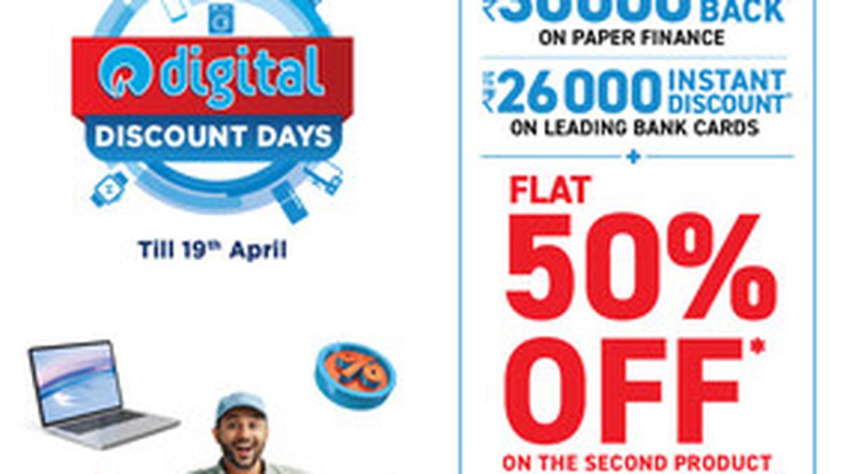 Customers can avail instant discount of up to ₹26,000* on leading bank cards. Alternatively, shoppers opting for paper finance can benefit from cashback of up to ₹30,000*. In addition, the retailer is offering a flat 50% discount* on the second product, encouraging bundled purchases across categories such as smartphones, laptops, large appliances, and home entertainment systems.